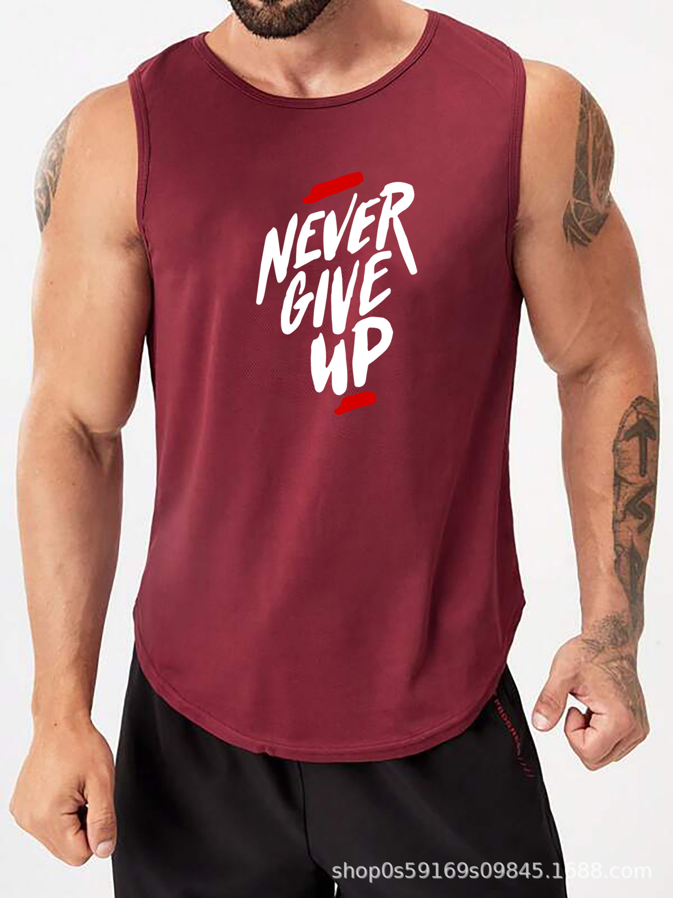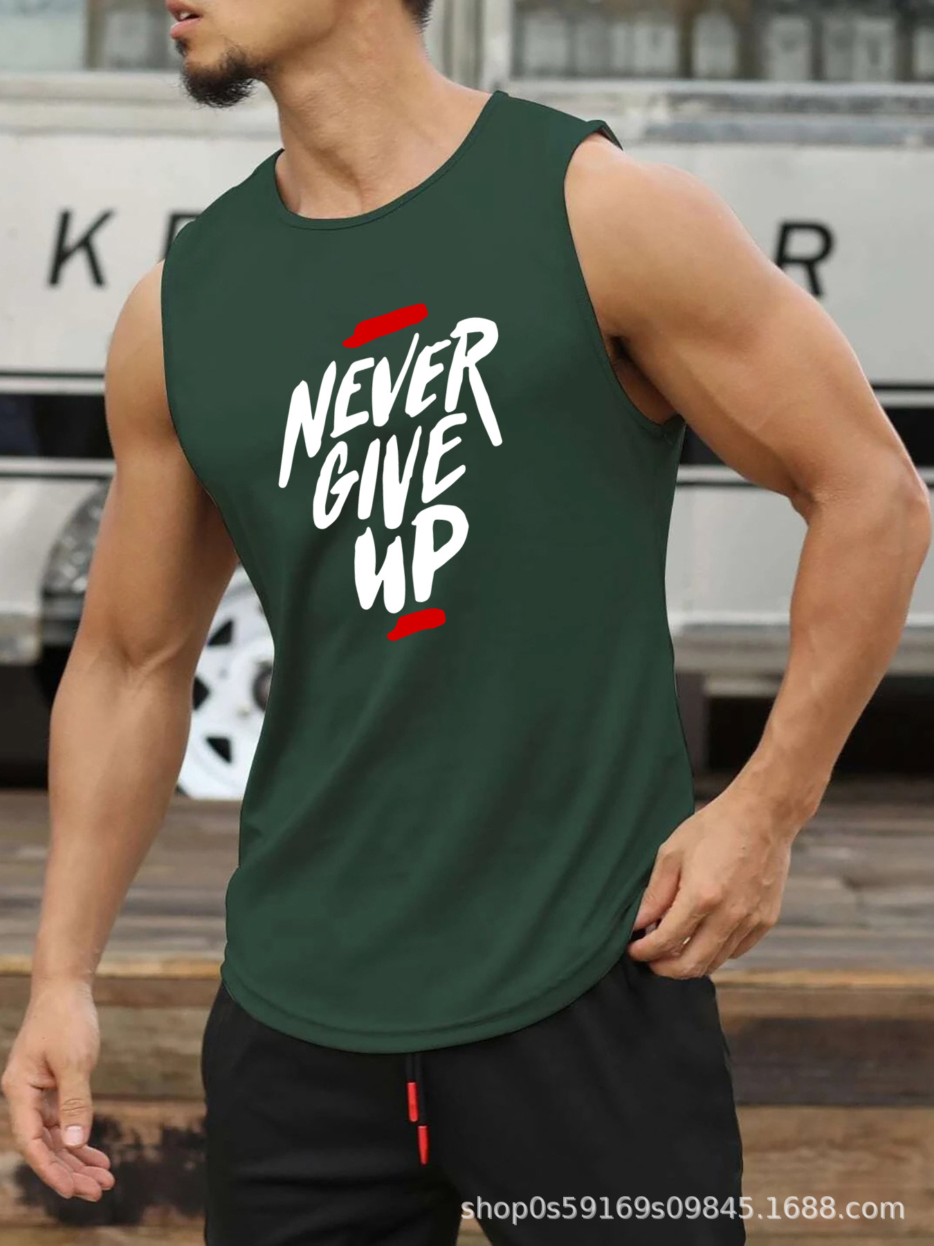 Летний хит продаж, популярный мужской жилет Nevergiveup с буквенным принтом и круглым вырезом для фитнеса, дышащий, впитывающий пот