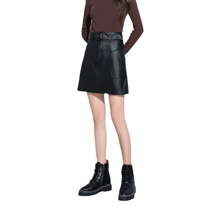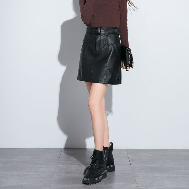 Главная страница > Кожаная кожаная юбка Haining Женская юбка Юбка Осень Зима Новая Овчинка