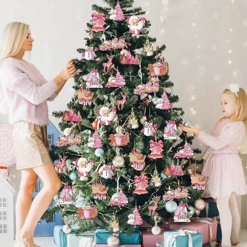 Трансграничные розовые рождественские елки украшения ретро деревянные рождественские украшения Деревенский фермерский дом висит рождественская елка украшения подвески