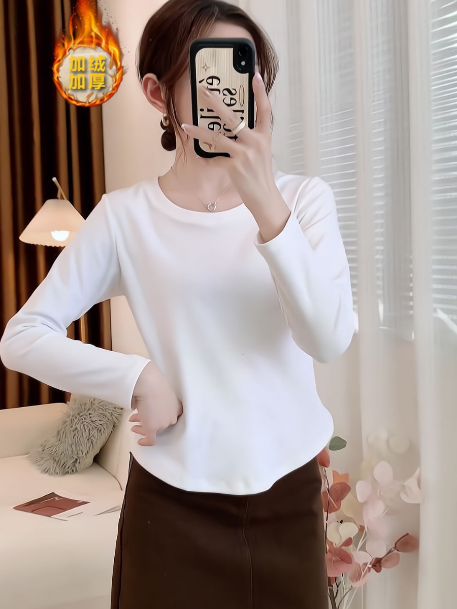 Главная страница > Свободная Двусторонняя бархатная рубашка больших размеров в Корейском стиле, новинка 2024 года, женская модная белая футболка, женский теплый топ с длинными рукавами