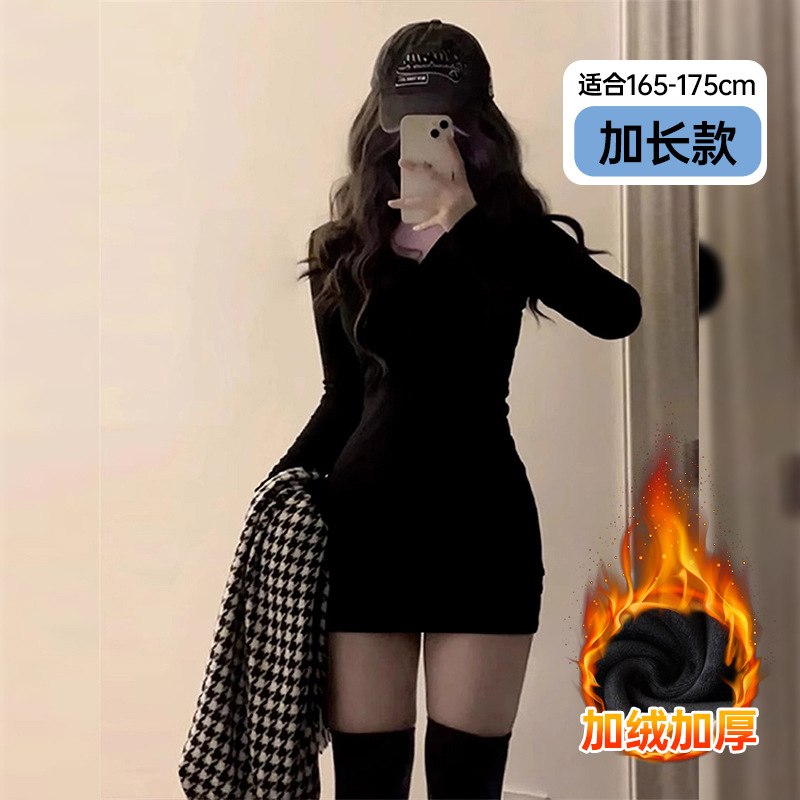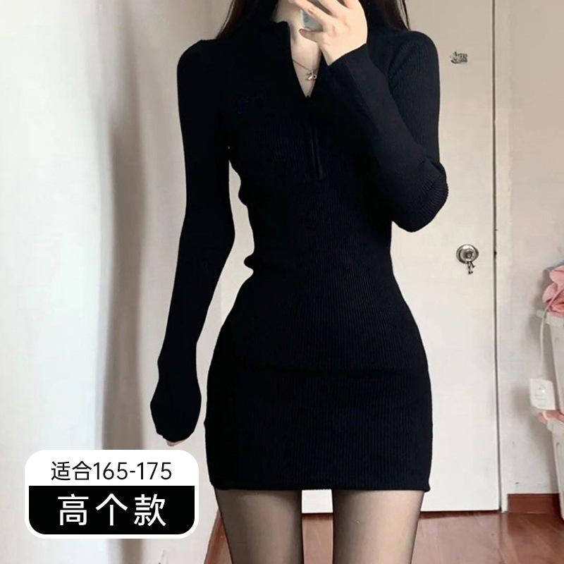 Весенне-осеннее платье в стиле «чистая и нежная пикантность», черное, с длинным рукавом, короткое, облегающее, с эффектом высокого класса, в стиле «мачеха», женское трикотажное платье.