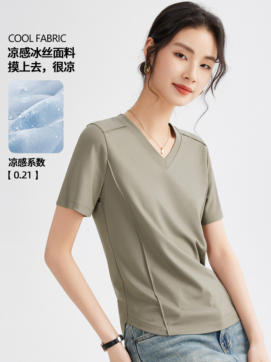 Футболка из ледяного шелка Женская короткая рукава Лето 2025 Новый маленький человек прохладный с половиной рукава Спортивная скоростная сухая футболка 1688 одежда