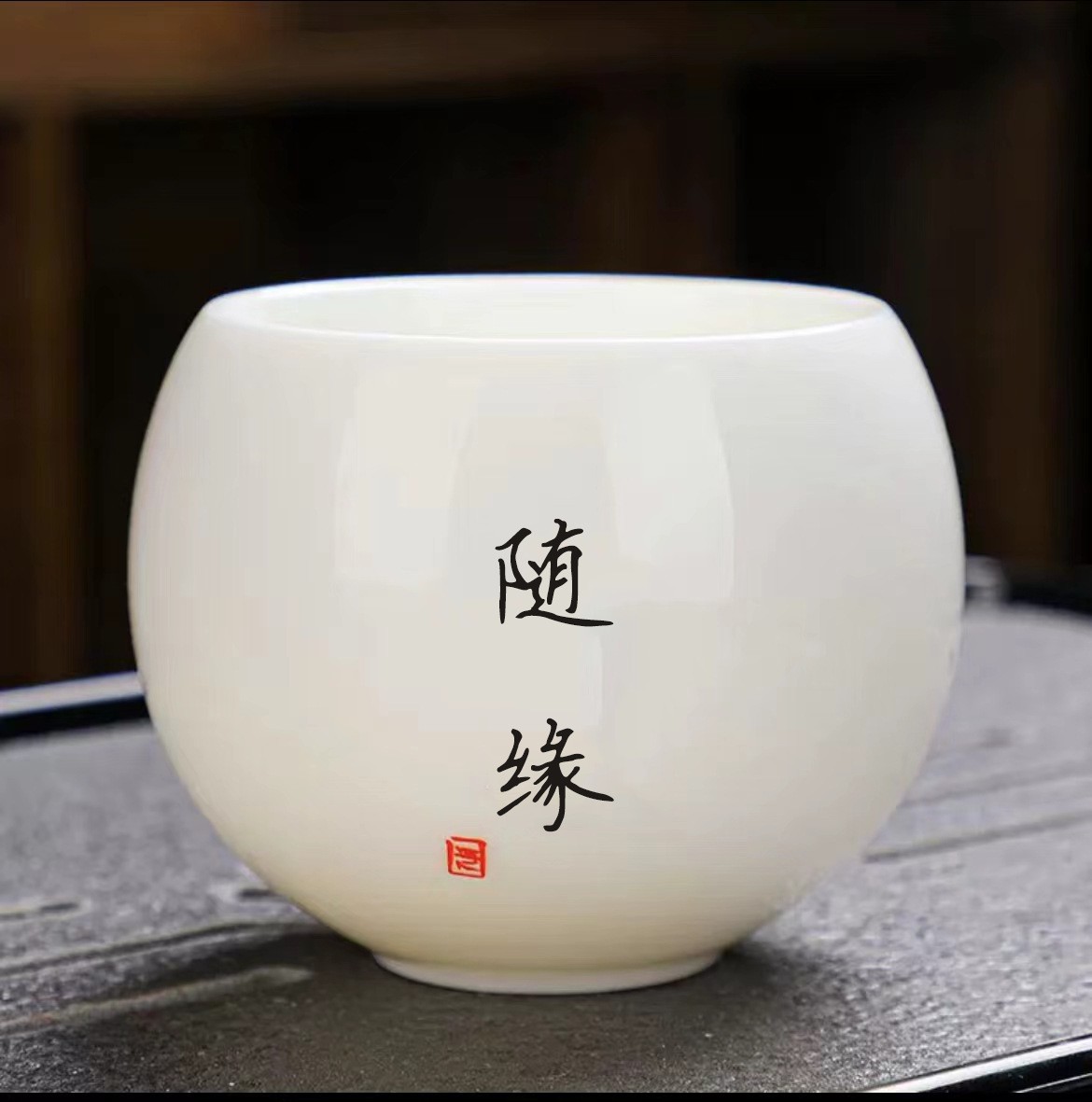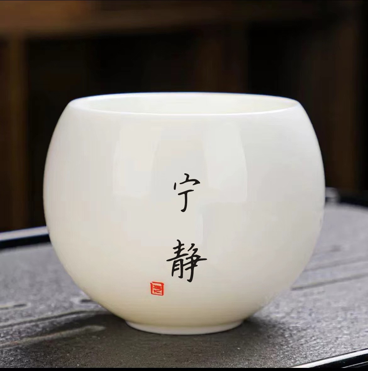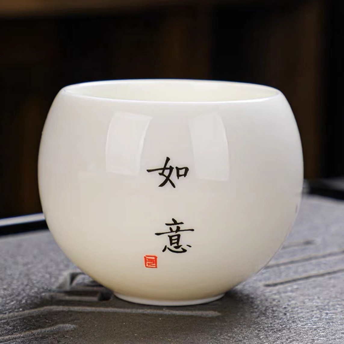 Большая обратная чашка из баранино-жираного нефрита — 140 мл с судьбой.