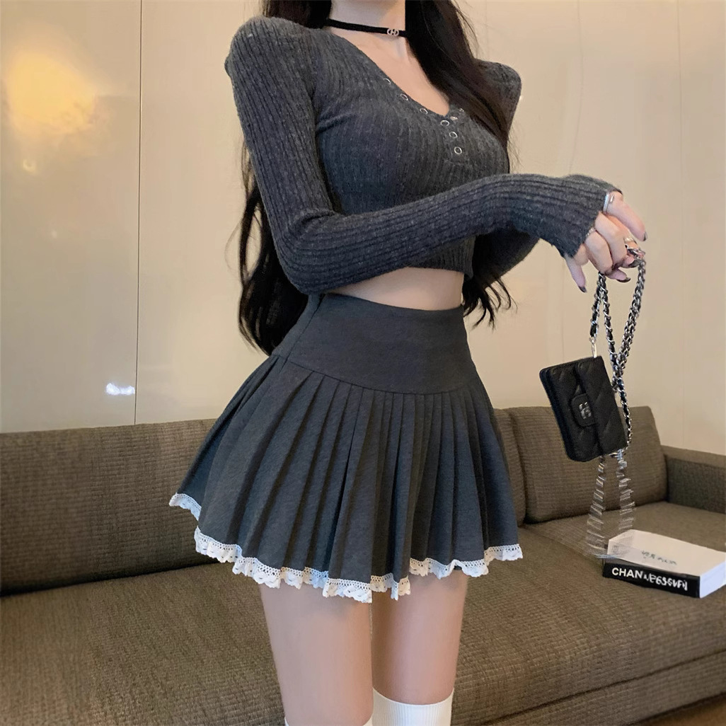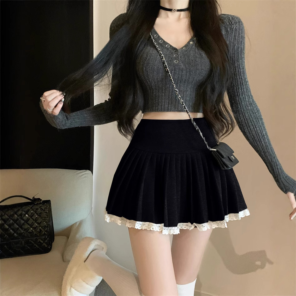 Главная страница > Женская юбка-плиссе из шерстяного кружева с кросс-бордерным дизайном, осень-зима 2025, утонченная А-силуэта для миниатюрных размеров