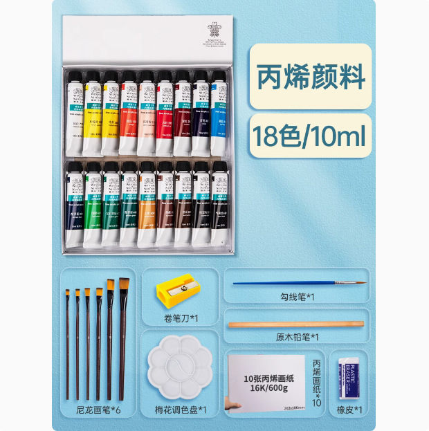 18 цветов + набор из 11 предметов + акриловая бумага для рисования