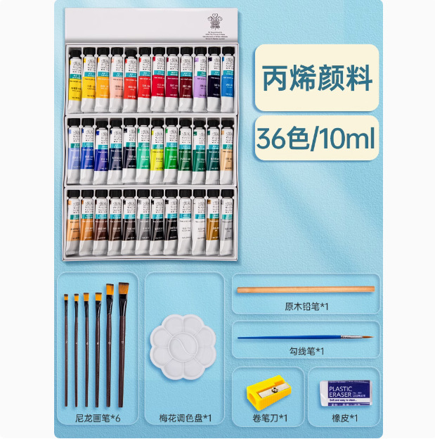 36 цветов + набор из 11 предметов + акриловая бумага для рисования