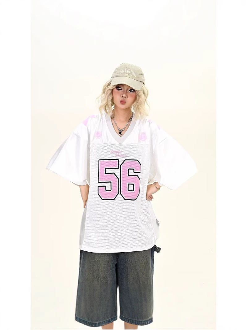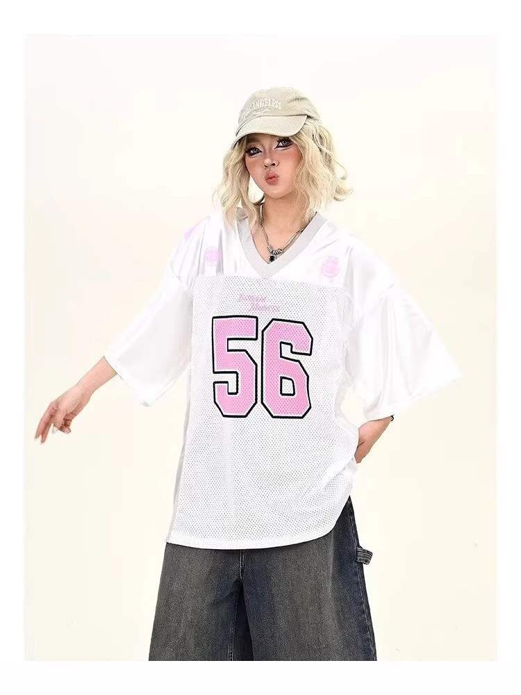 56 сетчатая сетка в стиле ретро в стиле хип-хоп № 56, американская уличная свободная спортивная дышащая футболка с короткими рукавами для мужчин