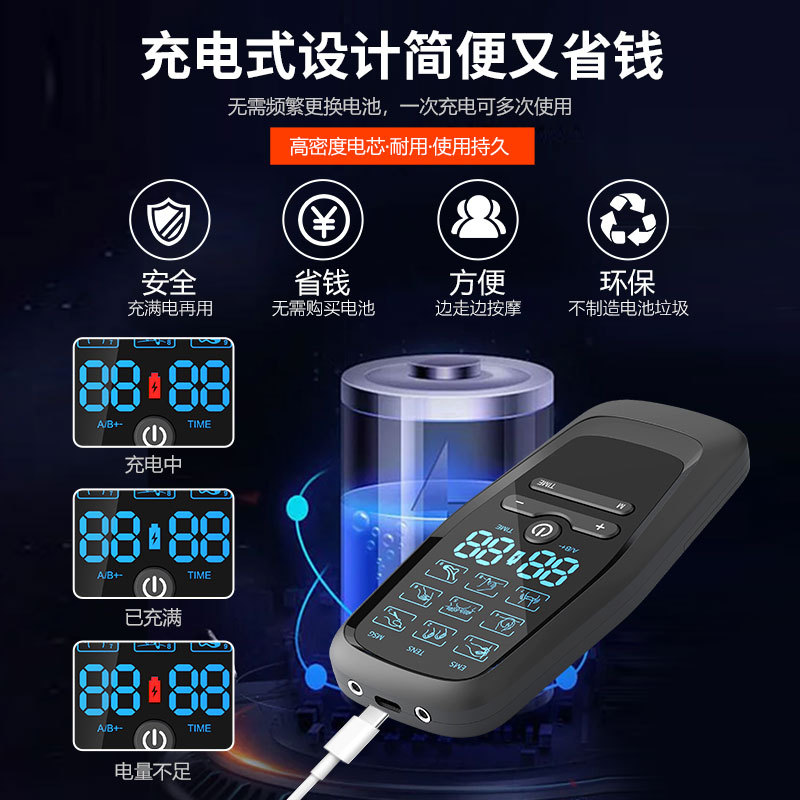 Главная страница > Трансграничный популярный цифровой меридианный массажер с двумя выходами, массажер для электростимуляции средней и низкой частоты, импульсный физиотерапевтический массажер