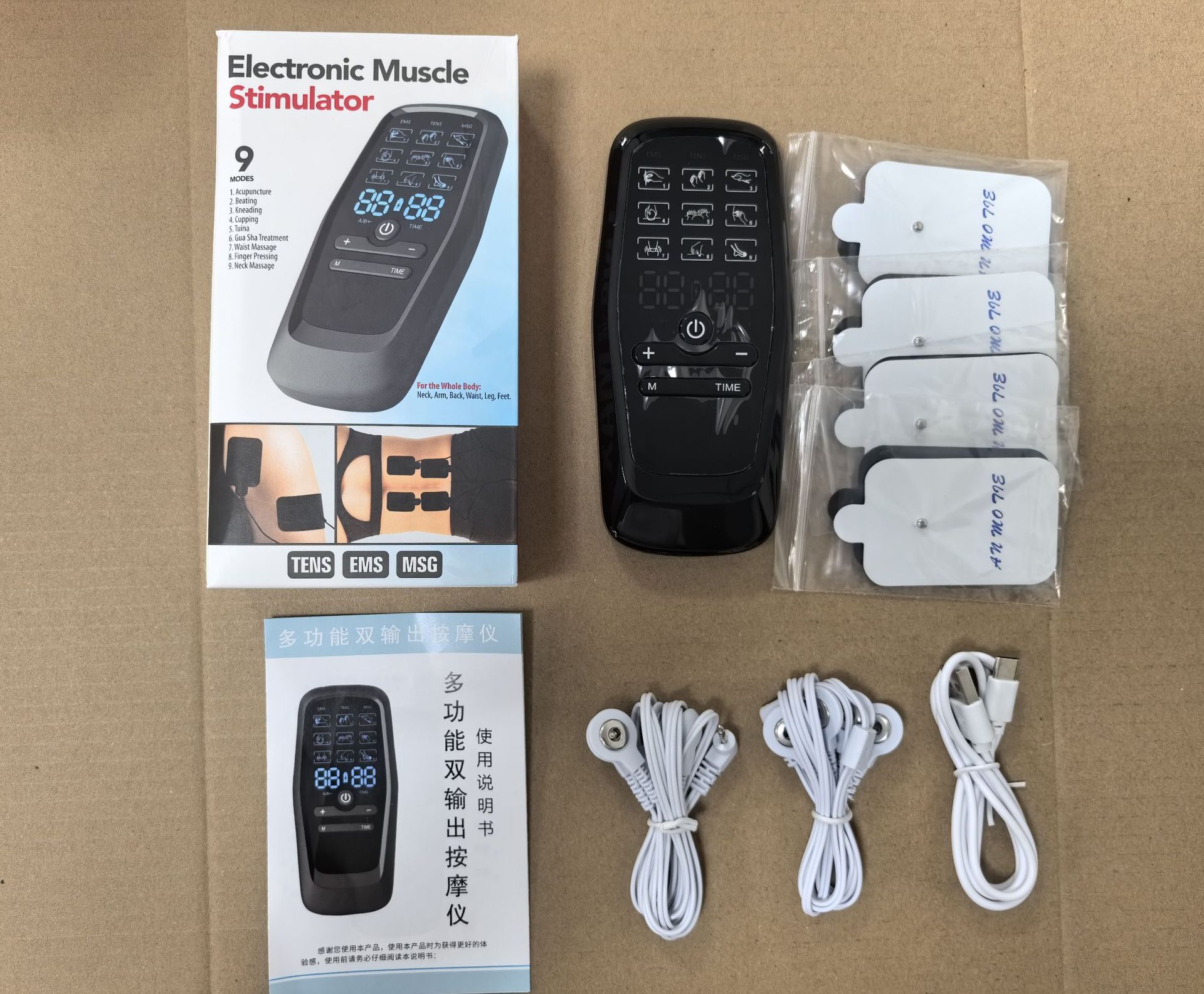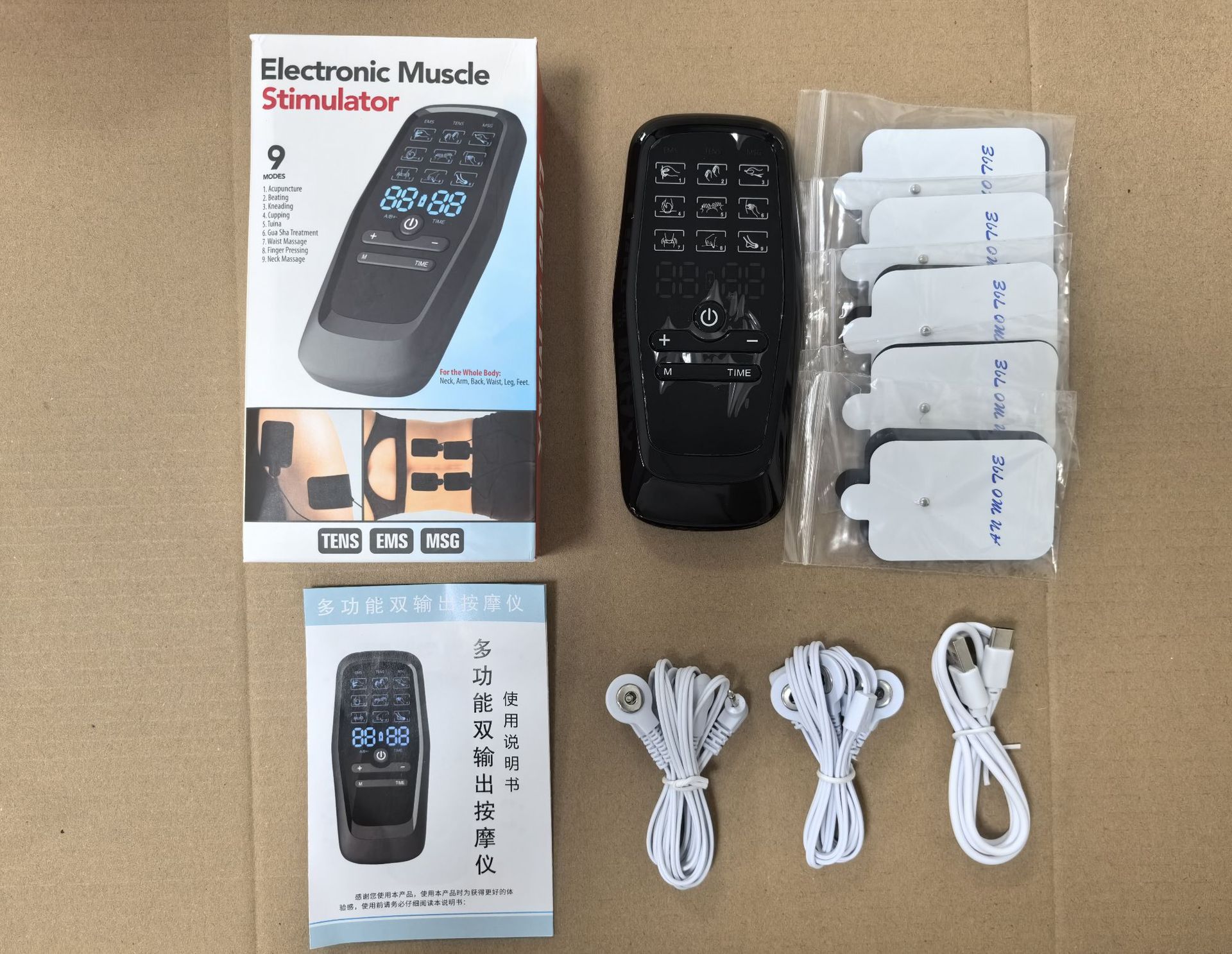 Трансграничный популярный цифровой меридианный массажер с двумя выходами, массажер для электростимуляции средней и низкой частоты, импульсный физиотерапевтический массажер
