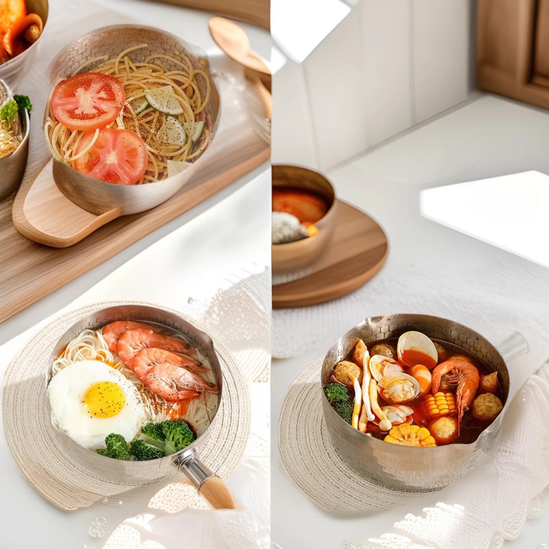 Главная страница > Трансграничная нержавеющая сталь в японском стиле, Снежная сковорода с молотком, бытовая двухслойная кастрюля для супа, горшок для лапши с пароваркой, молочный горшок оптом