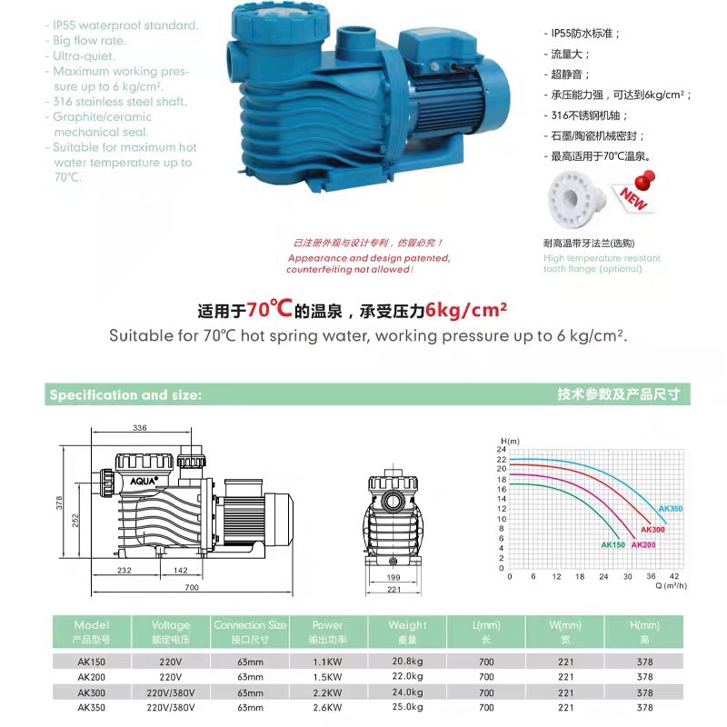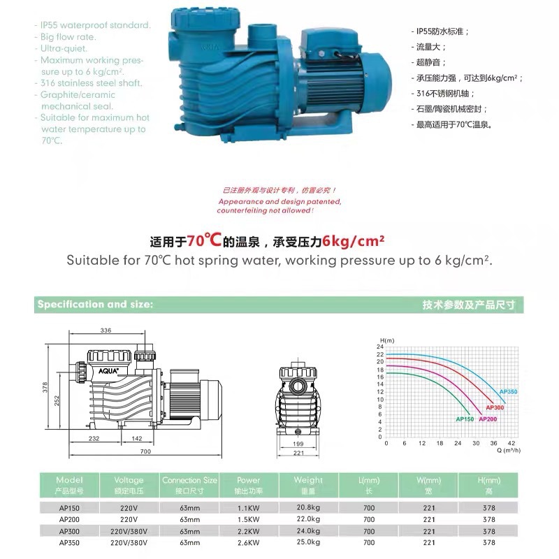 AQUA/Aike Бассейн Водяной насос Бассейн Оборудование Фильтрация/Цикл/Водяной насос Пластиковый Насос AP серии