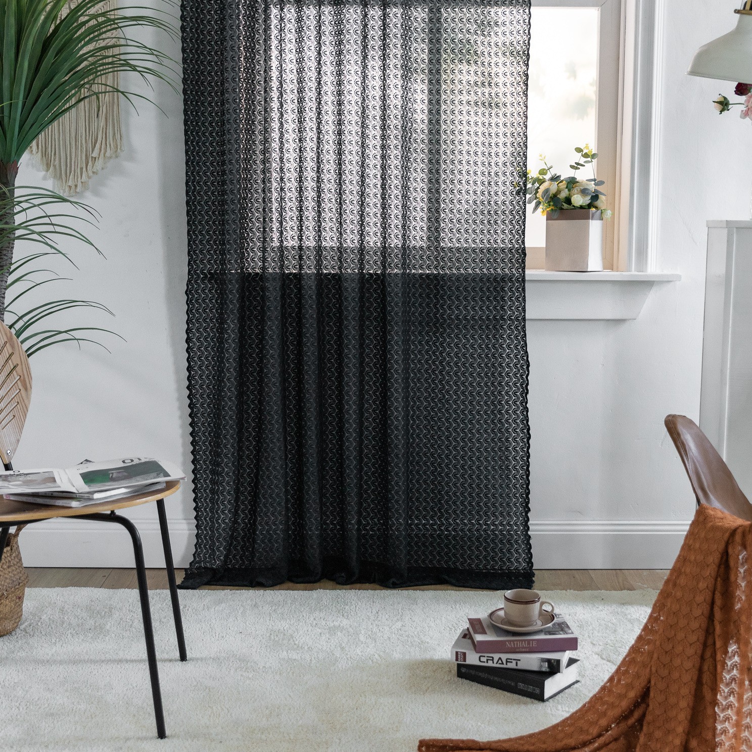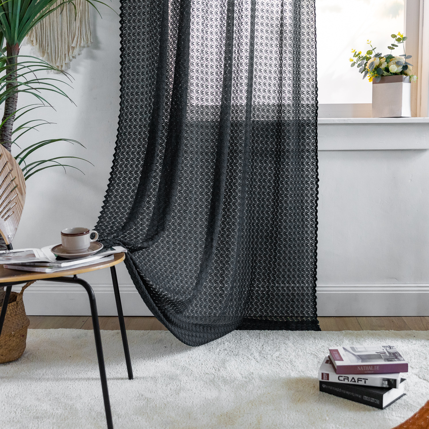 Главная страница > Новая занавеска североевропейская и американская кружевная полая пшеничная уха, черная без перфорации, гостиная, столовая, Короткая занавеска, готовая трансграничная фабрика
