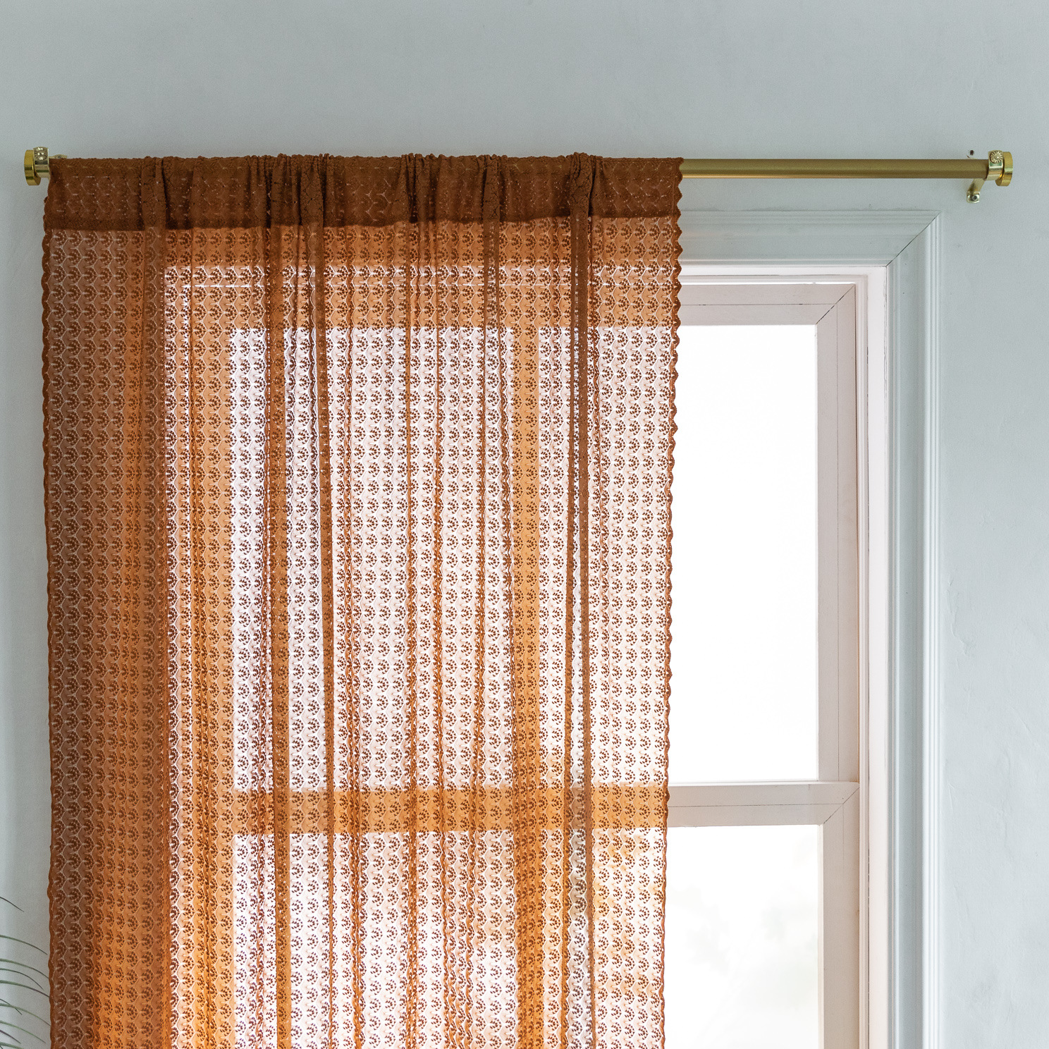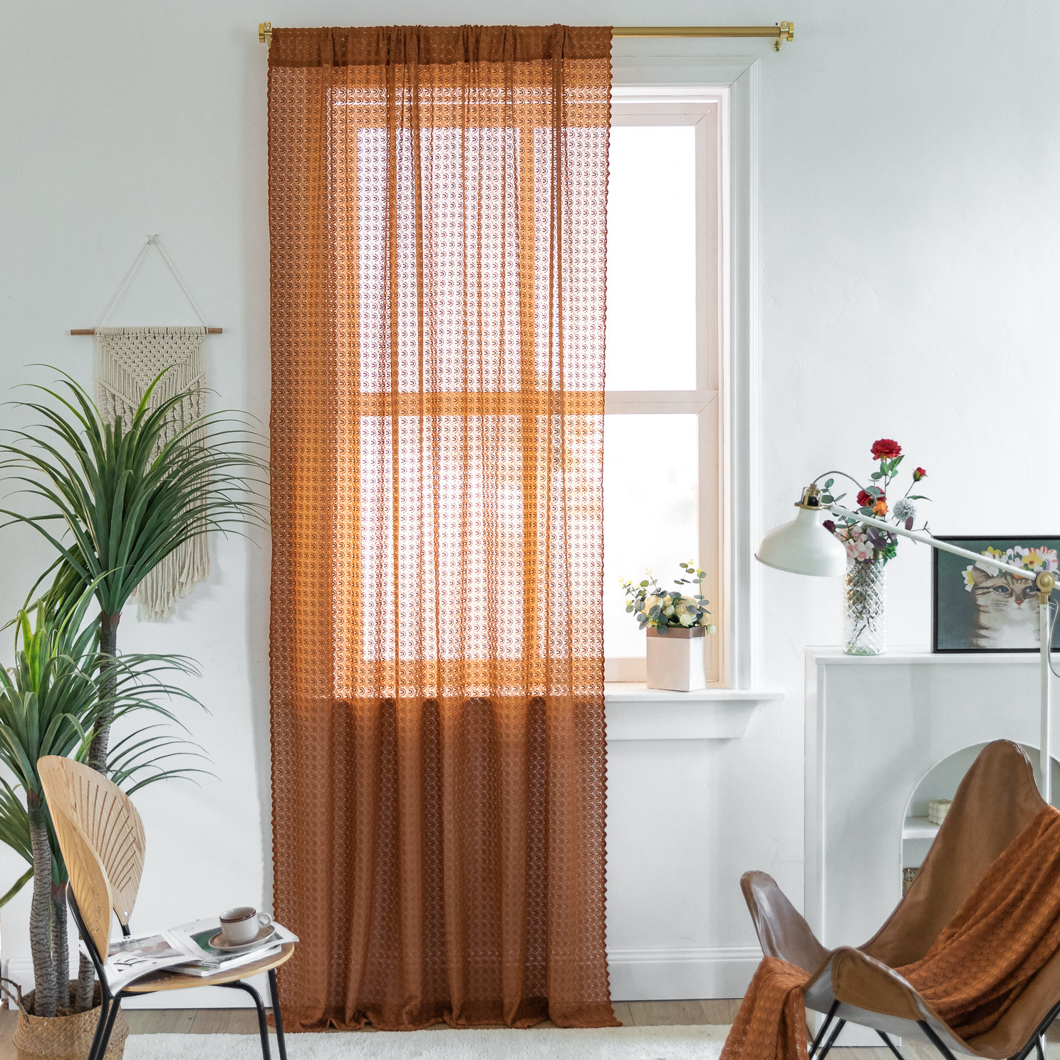 (Перфорированный) Оранжевый. Пшеничная кружевная занавеска