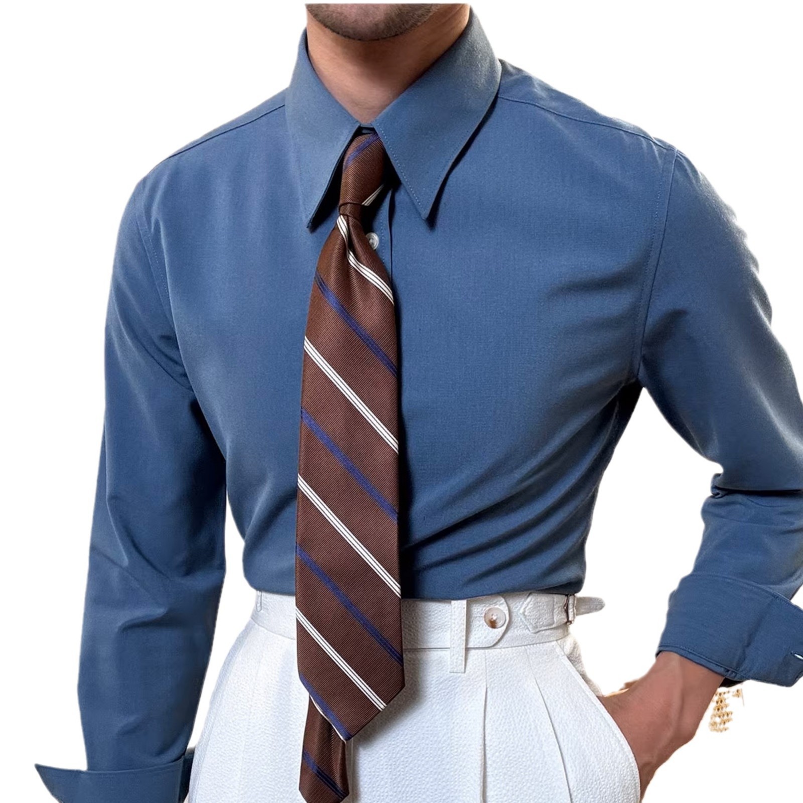 Главная страница > Мужская рубашка в осеннем французском стиле с большим воротником, деловая рубашка с длинным рукавом и острым воротником, приталенная, с воротником-стойкой, не требующая глажки, для трансграничной торговли.