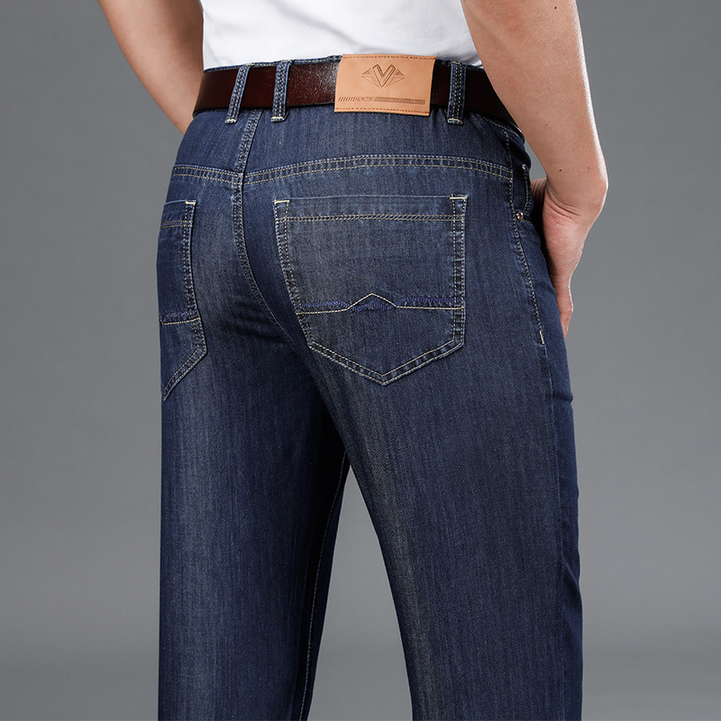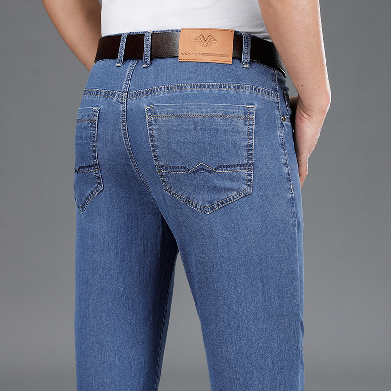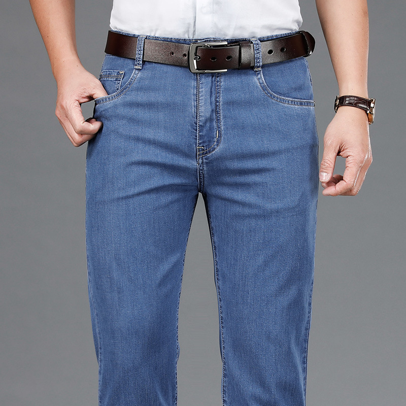 Джинсы летние тонкие прямые свободные мужские брюки среднего возраста деловые повседневные эластичные длинные брюки мужские брюки