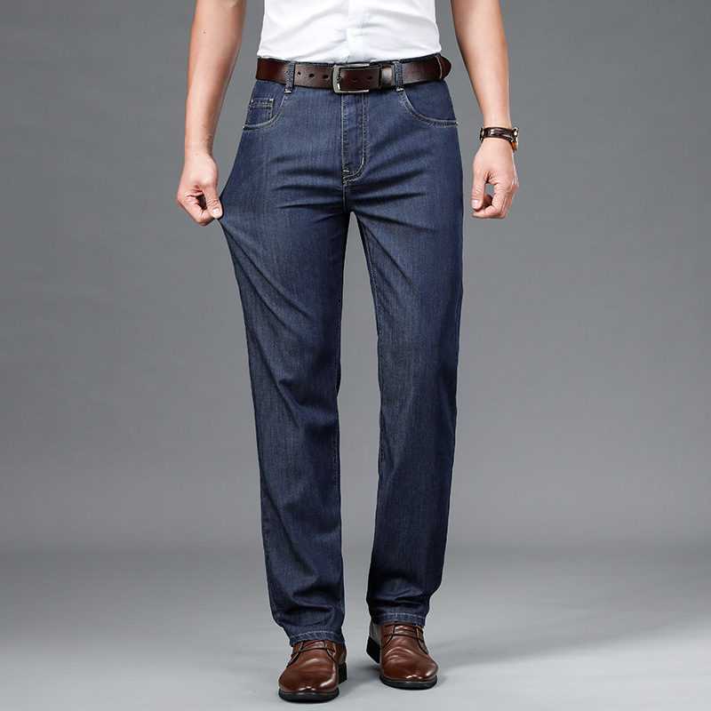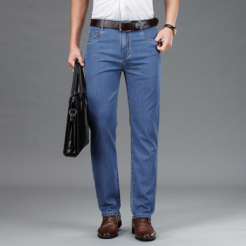 Главная страница > Джинсы летние тонкие прямые свободные мужские брюки среднего возраста деловые повседневные эластичные длинные брюки мужские брюки