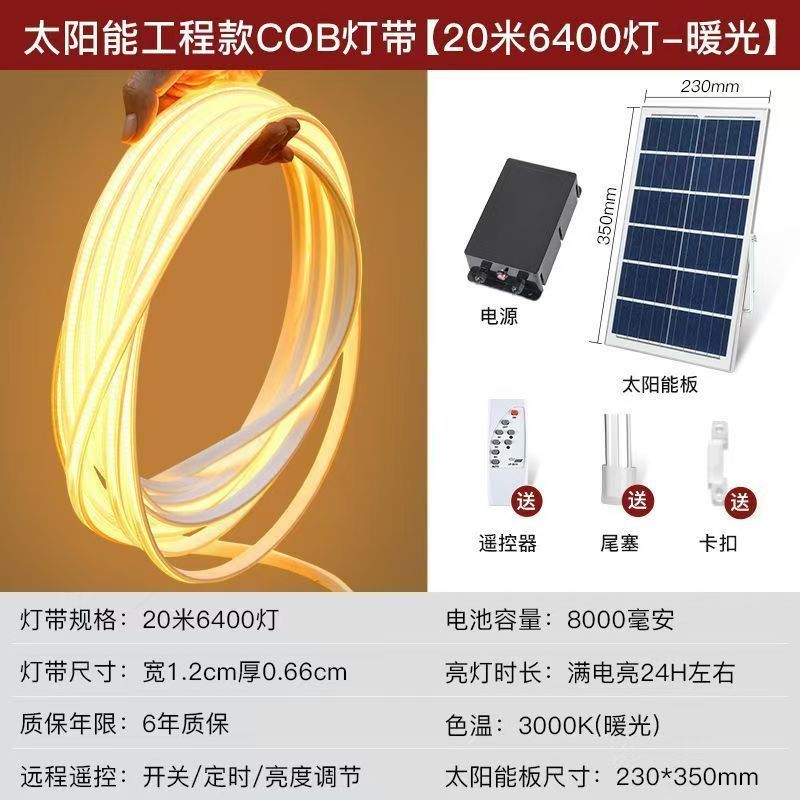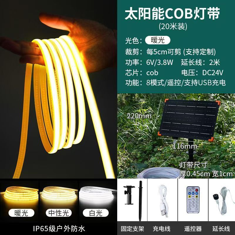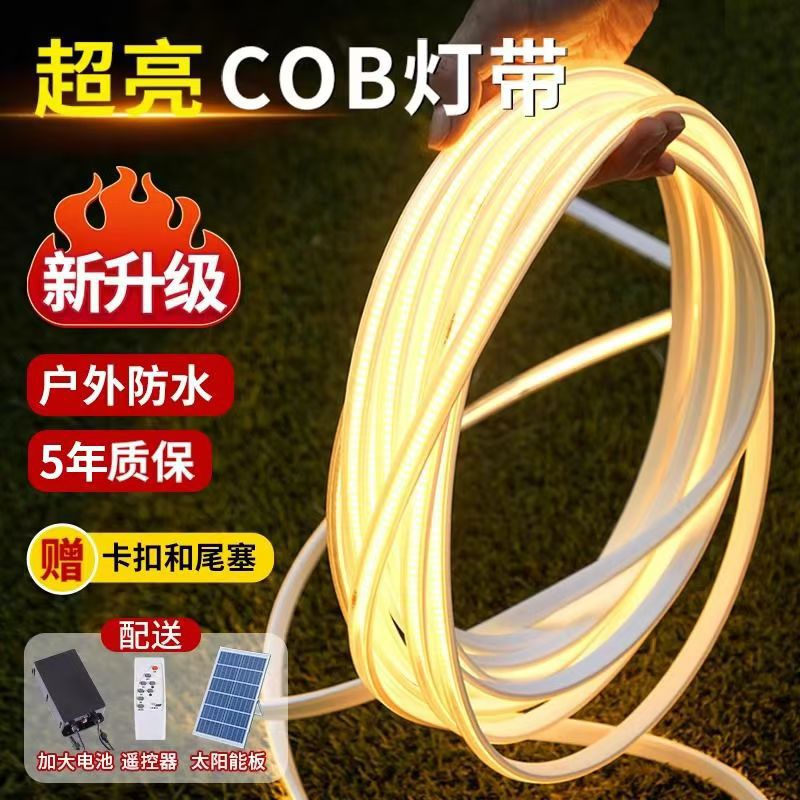 Главная страница > Новая светодиодная лента COB на солнечных батареях, уличная, водонепроницаемая, сверхъяркая, для двора, виллы, сада, балкона, атмосферная подсветка