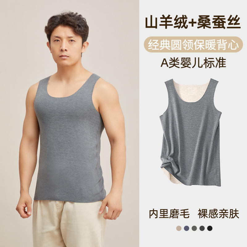 Главная страница > Шелковый мужской терможилет, антистатический, класс А, с круглым вырезом, бесшовный, на кашемировой подкладке, без рукавов, простой стиль.