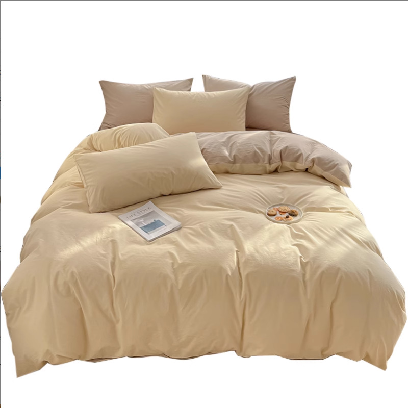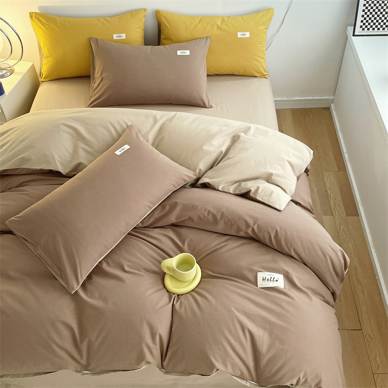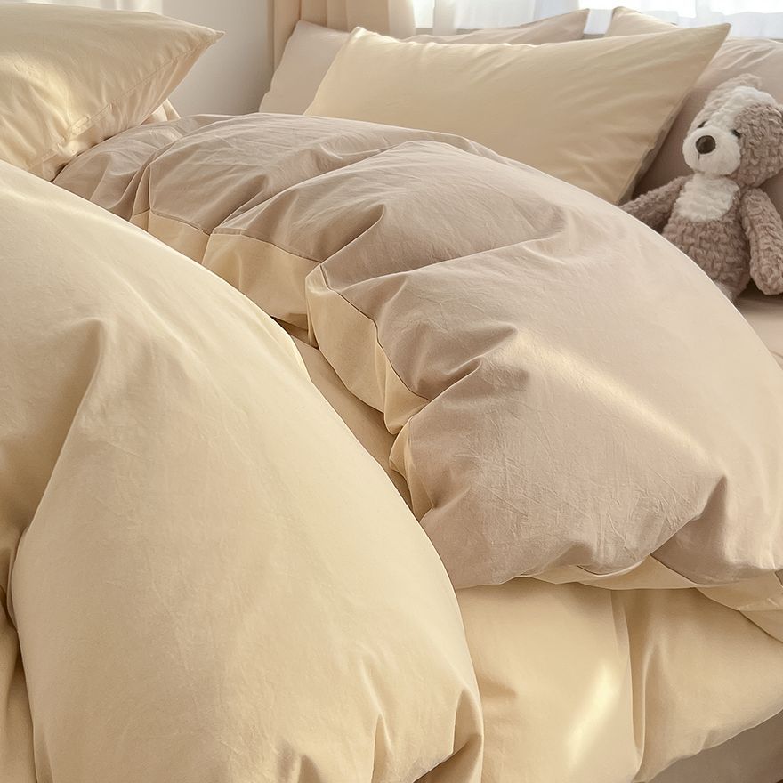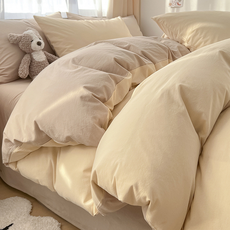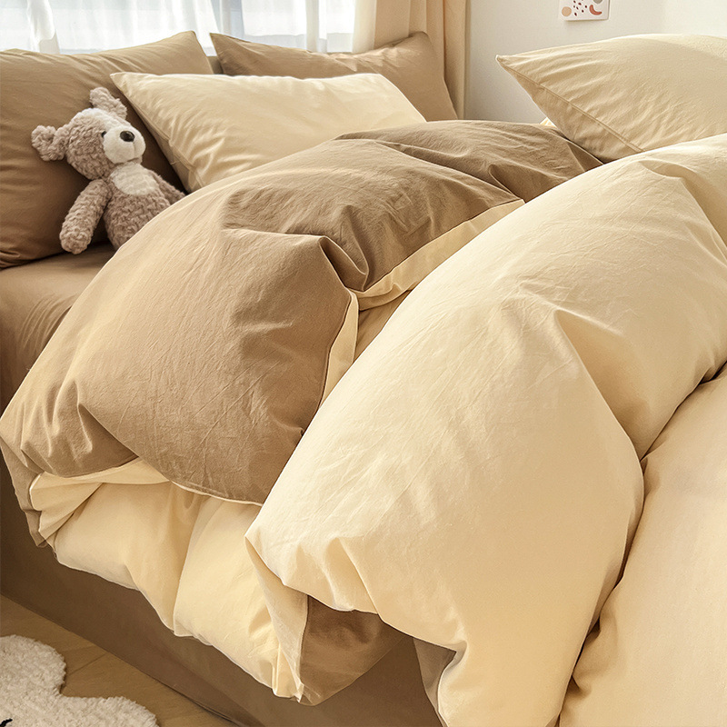 Серия однотонных цветов: бежевый + кофейный [супер мягкий стираный хлопок, мягкая и восковая посадка]