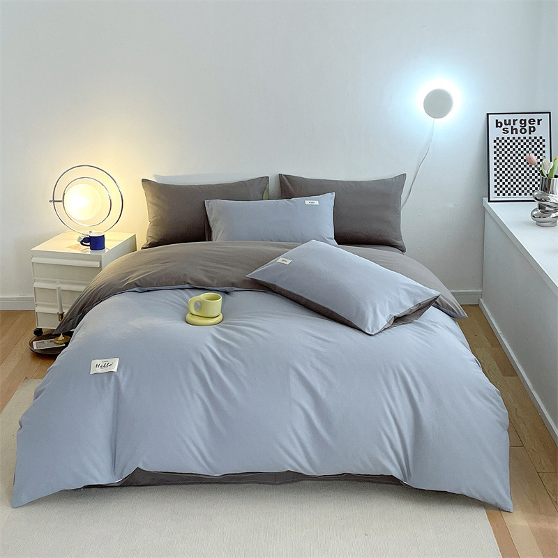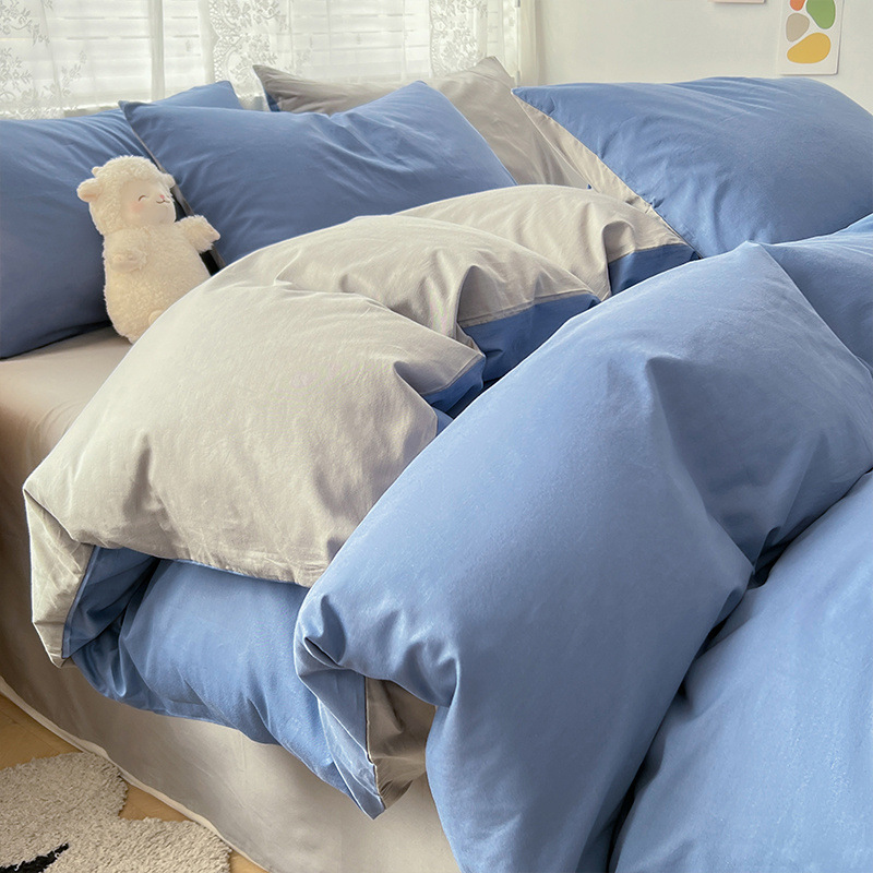 Однотонная серия: сапфировый синий + светло-серый [супер мягкий стираный хлопок, мягкая и гладкая посадка]