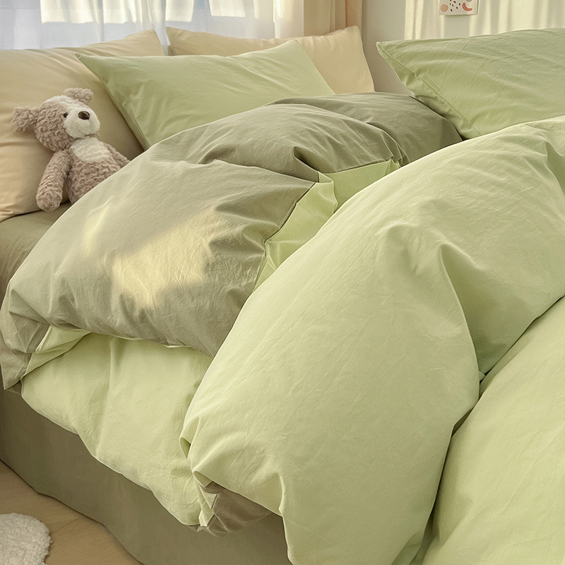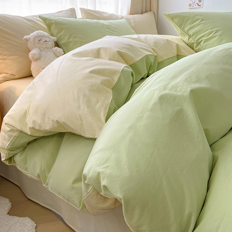 Однотонная серия: молочно-зеленый + молочно-белый [супер мягкий стираный хлопок, мягкая и восковая текстура, идеальная посадка]