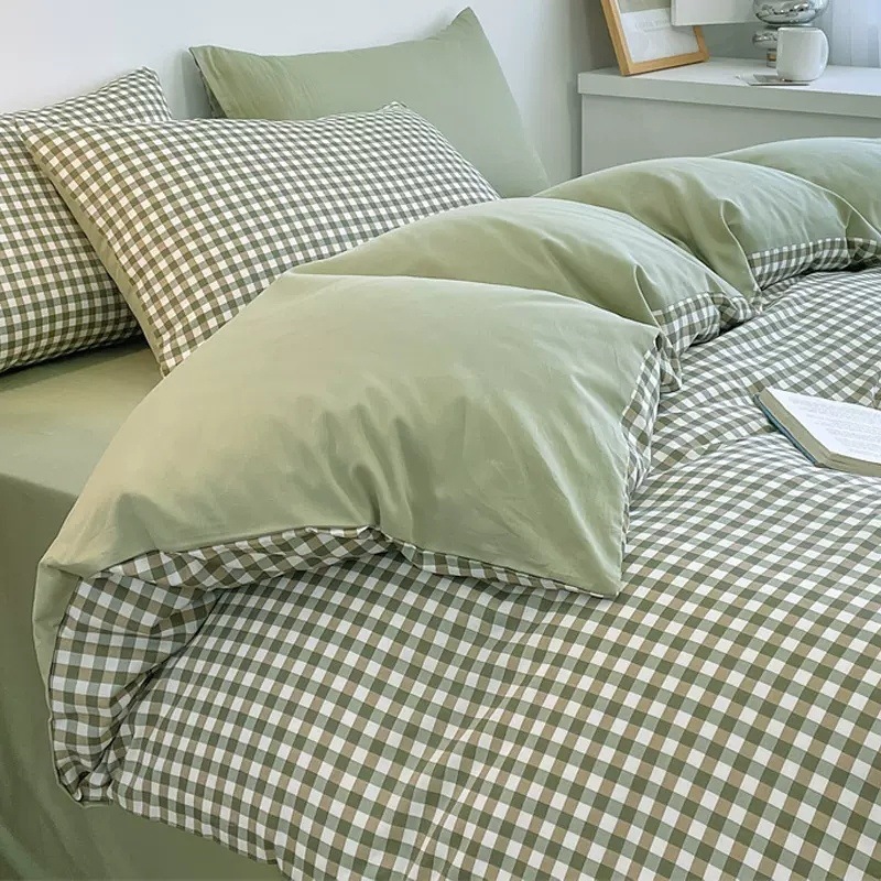Однотонная серия: молочно-зеленый + зеленая клетка [супер мягкий стираный хлопок_мягкий и нежный, приятный к телу]