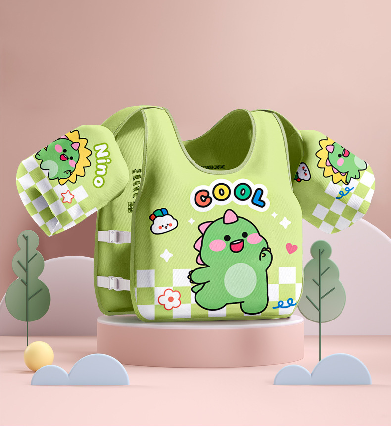 Динозавр (зеленый) [ 10-25.5kg ] жилет, плавучая куртка [надувной бесплатно]