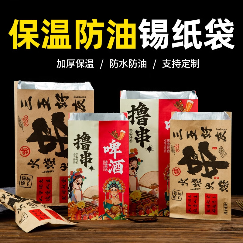 Оловянная бумага для барбекю сумка маслостойкие на вынос, упаковка из алюминиевой фольги, жареная курица, шампур, одноразовые теплоизоляционные оловянные бумажные пакеты для оптовой продажи