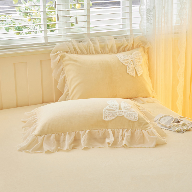 Корейская Принцесса Ветер Девочка Сердце Осеннее и Зимнее Молочное Фархат Набор из четырех частей утолщен Теплое кружево