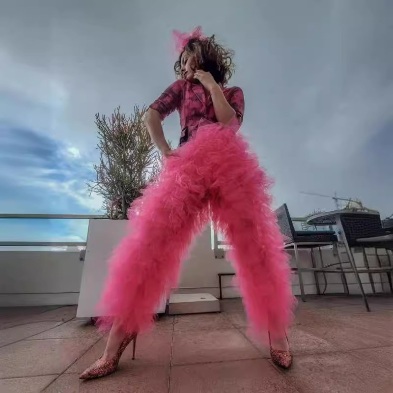 2022 новая милая девушка сетчатые сшитые эластичные брюки для торта Европа и США Европейский размер экспорта пухлые сетчатые брюки