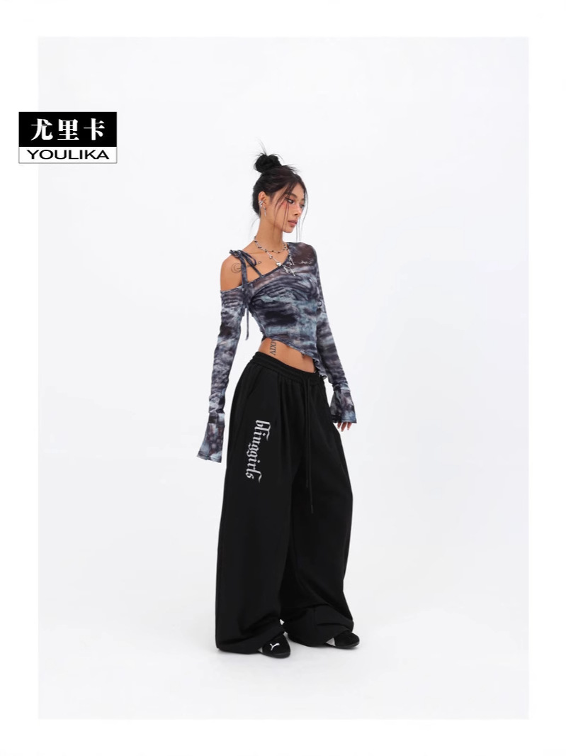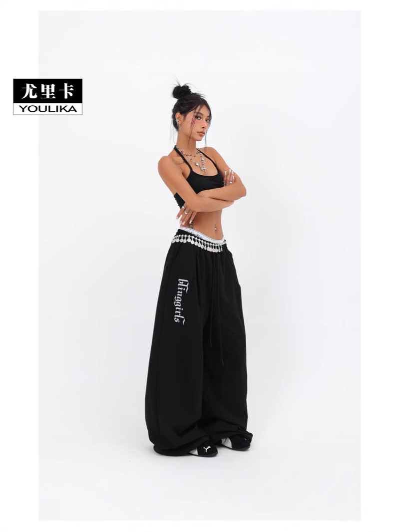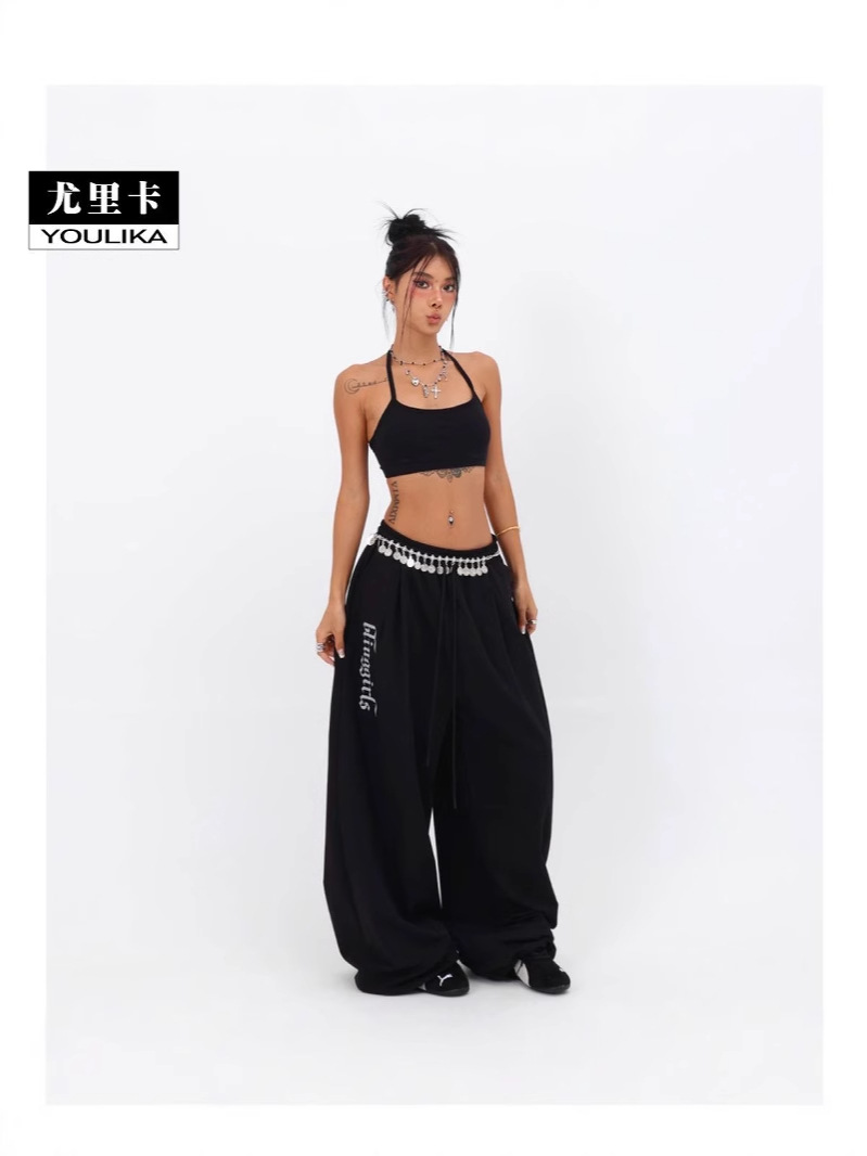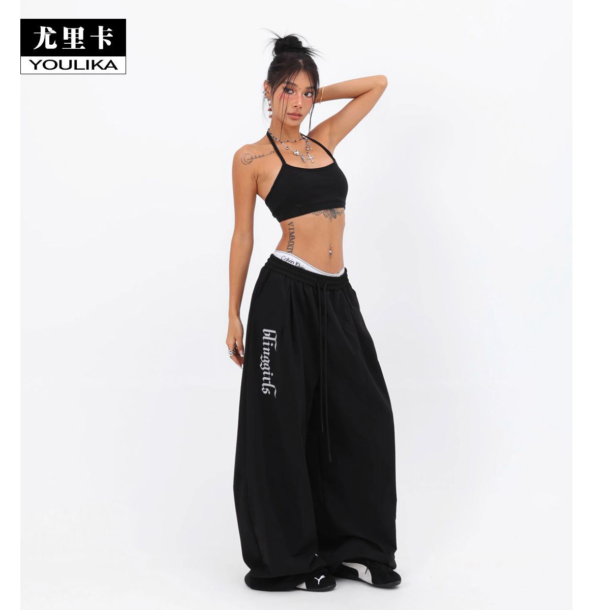Главная страница > Американский ретро новый стиль уличных танцев джаза большие свободные повседневные брюки для женщин со светящимся принтом прямые спортивные штаны длиной до пола