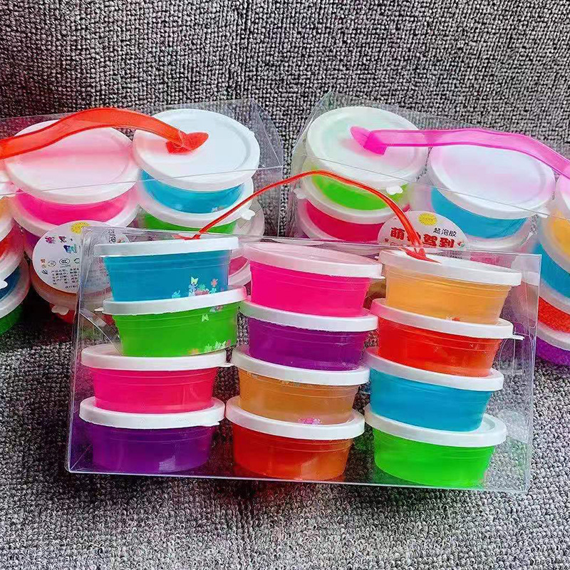 Двенадцать в портативную коробку Кристальная грязь красочный сплошной цвет Кристальный грязевой костюм полупрозрачный Пенящийся клей в наличии оптом