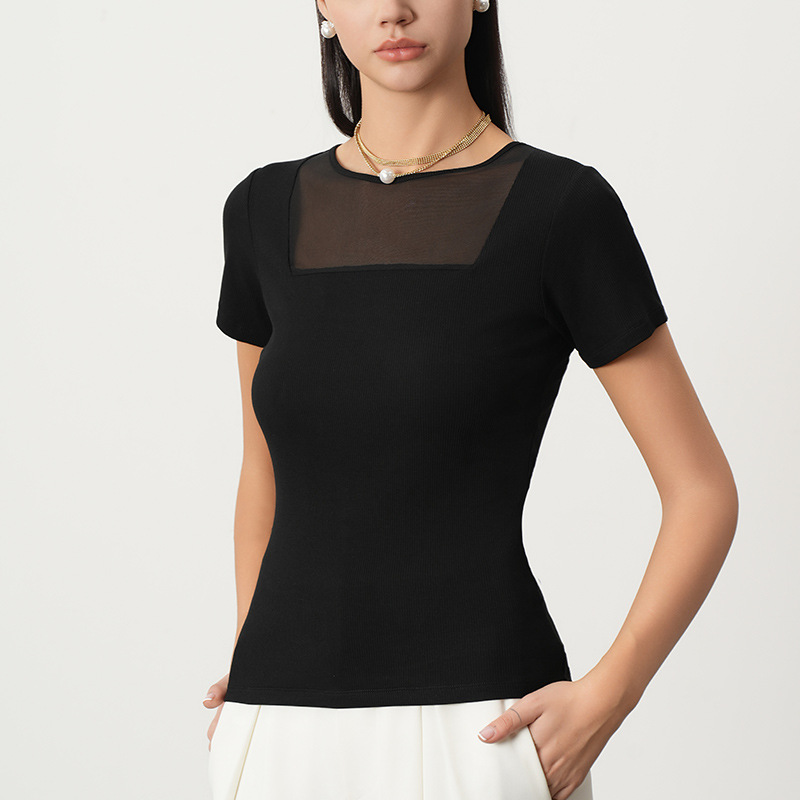Главная страница > CANVAUS новая перспективная сетчатая футболка с короткими рукавами с круглым вырезом Летний черный тонкий полый дикий топ