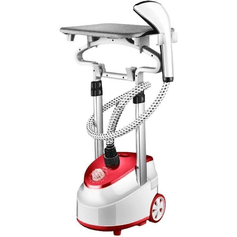 Красный двуполюсный отпариватель для одежды с гладильной доской