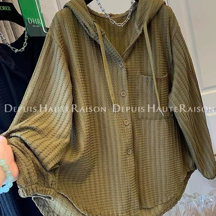 [Оригинальное качество] Иностранная атмосфера с капюшоном рубашка женская осень новый стиль ins корейский кардиган куртка