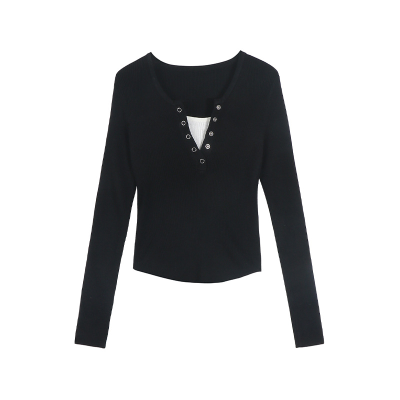 Главная страница > Женский вязаный свитер в корейском стиле, имитация двухслойного, осень 2025, новая приталенная универсальная базовая рубашка с длинным рукавом