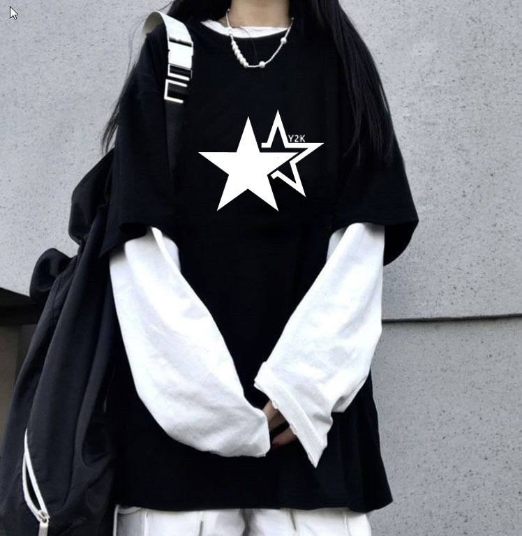 Главная страница > Летняя новинка 2025 года: женская корейская свободная футболка с длинным рукавом, имитация двухслойной, с принтом в виде букв, для кросс-бордерной торговли.