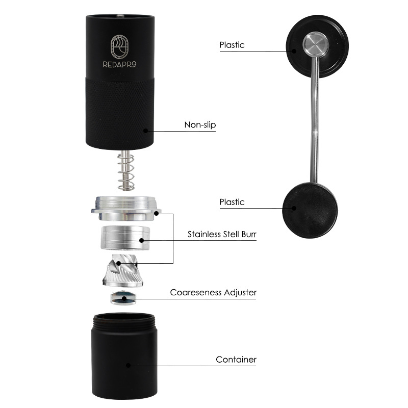 Главная страница > Ручная кофемолка из нержавеющей стали Шлифовальный сердечник алюминиевый сплав корпус ручная кофемолка Moka горшок кофемолка