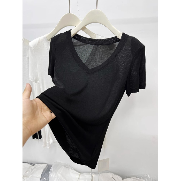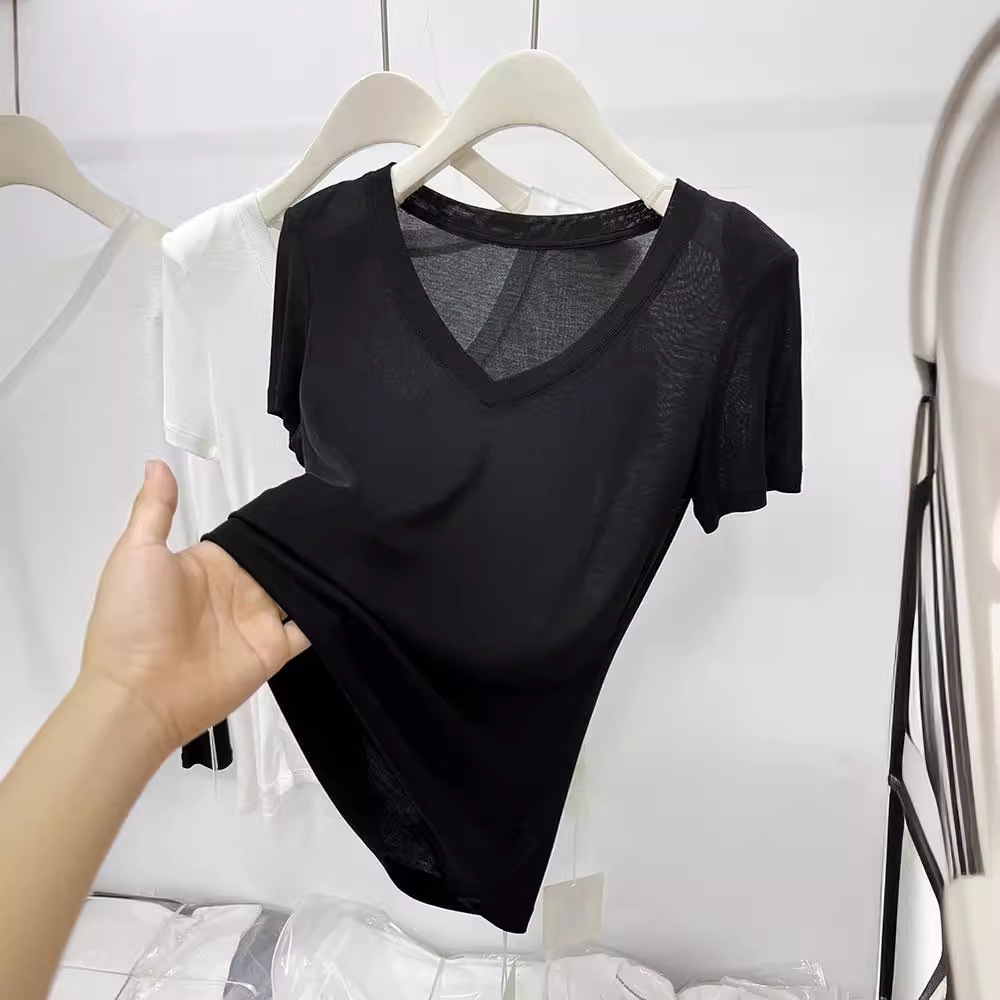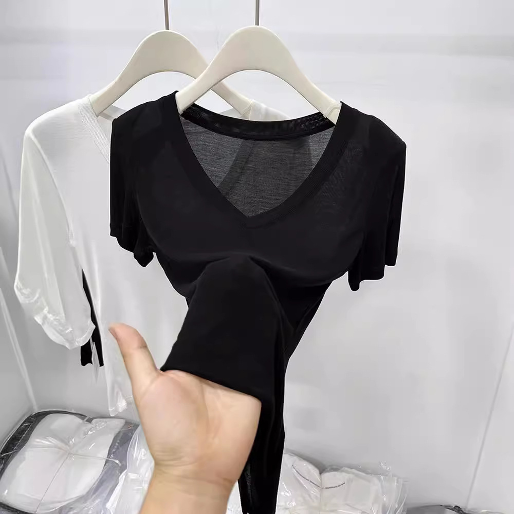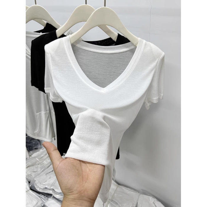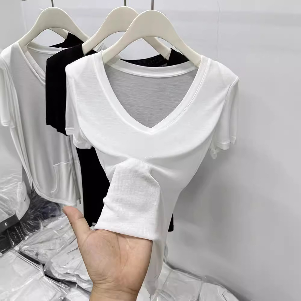 Главная страница > Белая футболка с v-образным вырезом женская рубашка с короткими рукавами ins прилив летом 2024 новая повседневная маска дизайн топы женская футболка