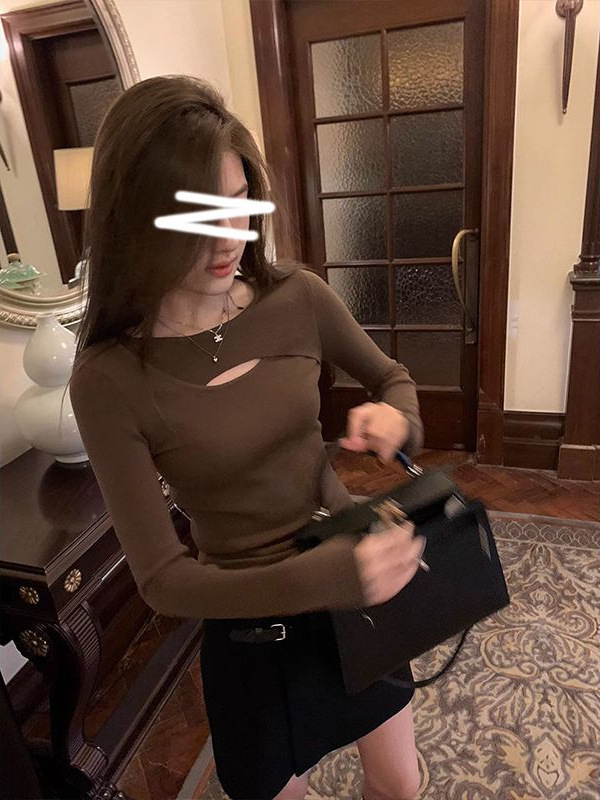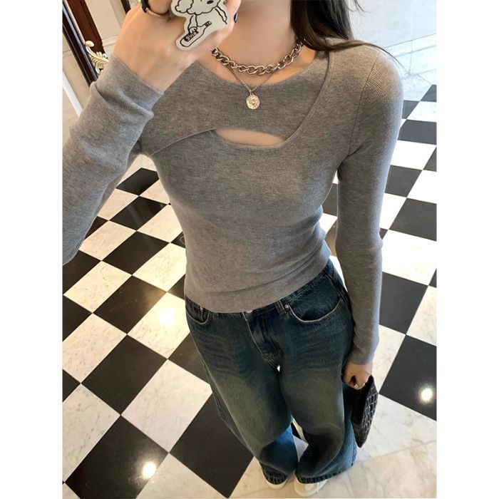 Главная страница > На плече серая тонка с длинными рукавами футболка женская ранняя весна 2025 новый дизайн ощущение полой нижней рубашки осень