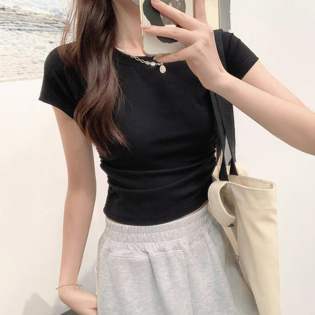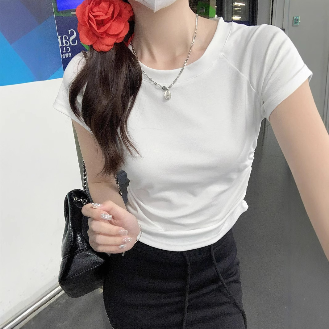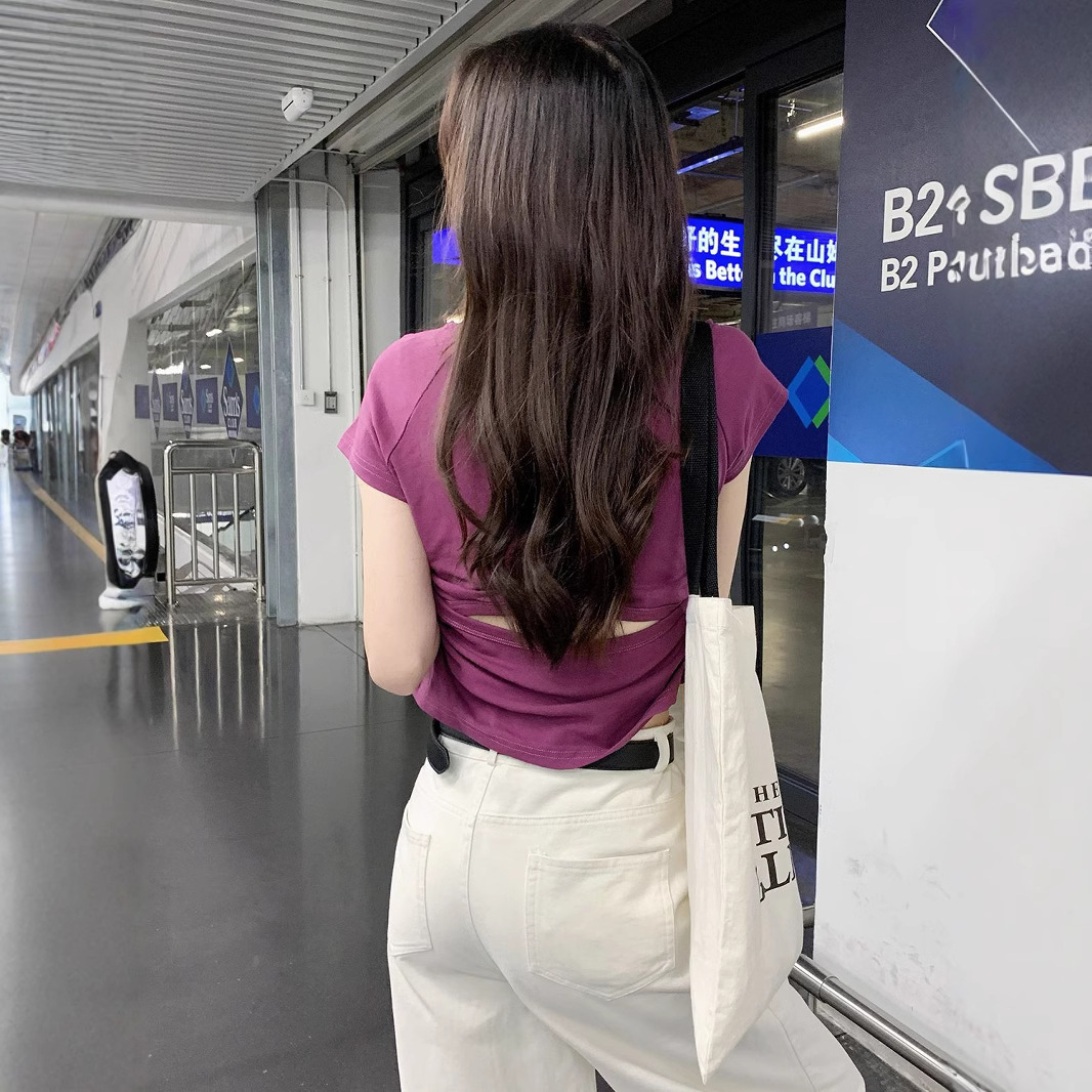 Главная страница > Хлопчатобумажная футболка с короткими рукавами Лето 2025 новый дизайн ощущение открытой спины
