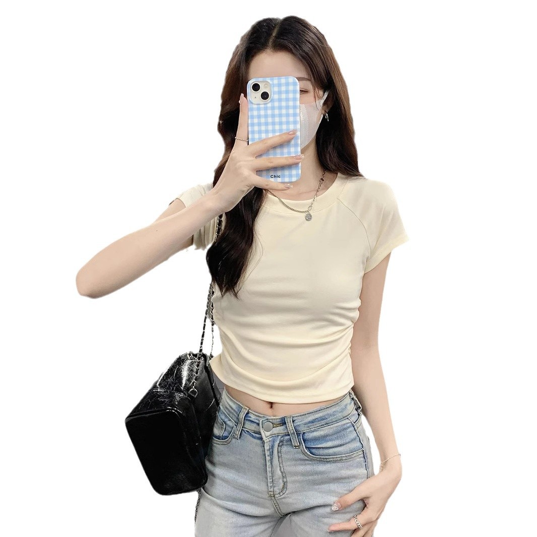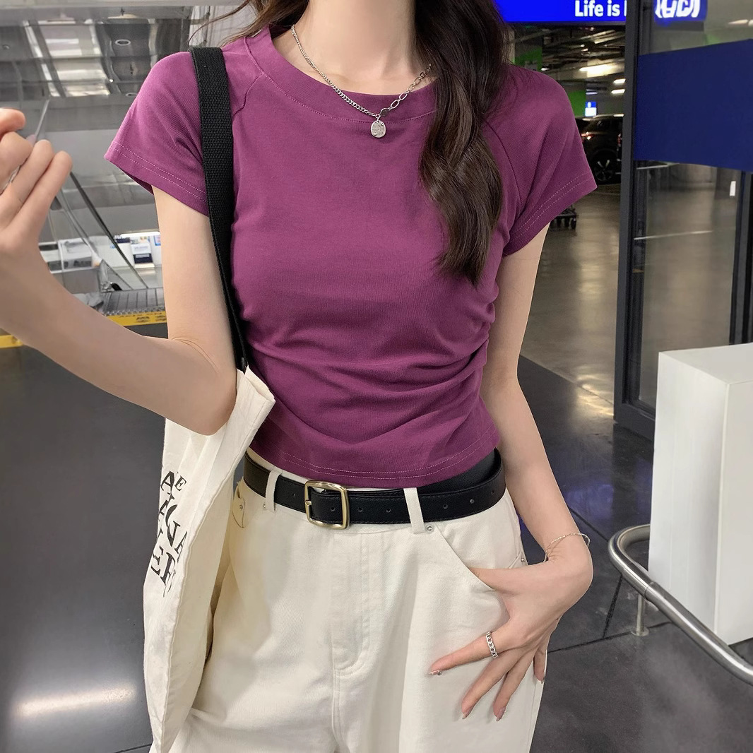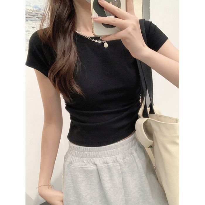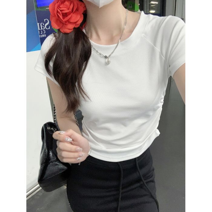 Главная страница > Хлопчатобумажная футболка с короткими рукавами Лето 2025 новый дизайн ощущение открытой спины