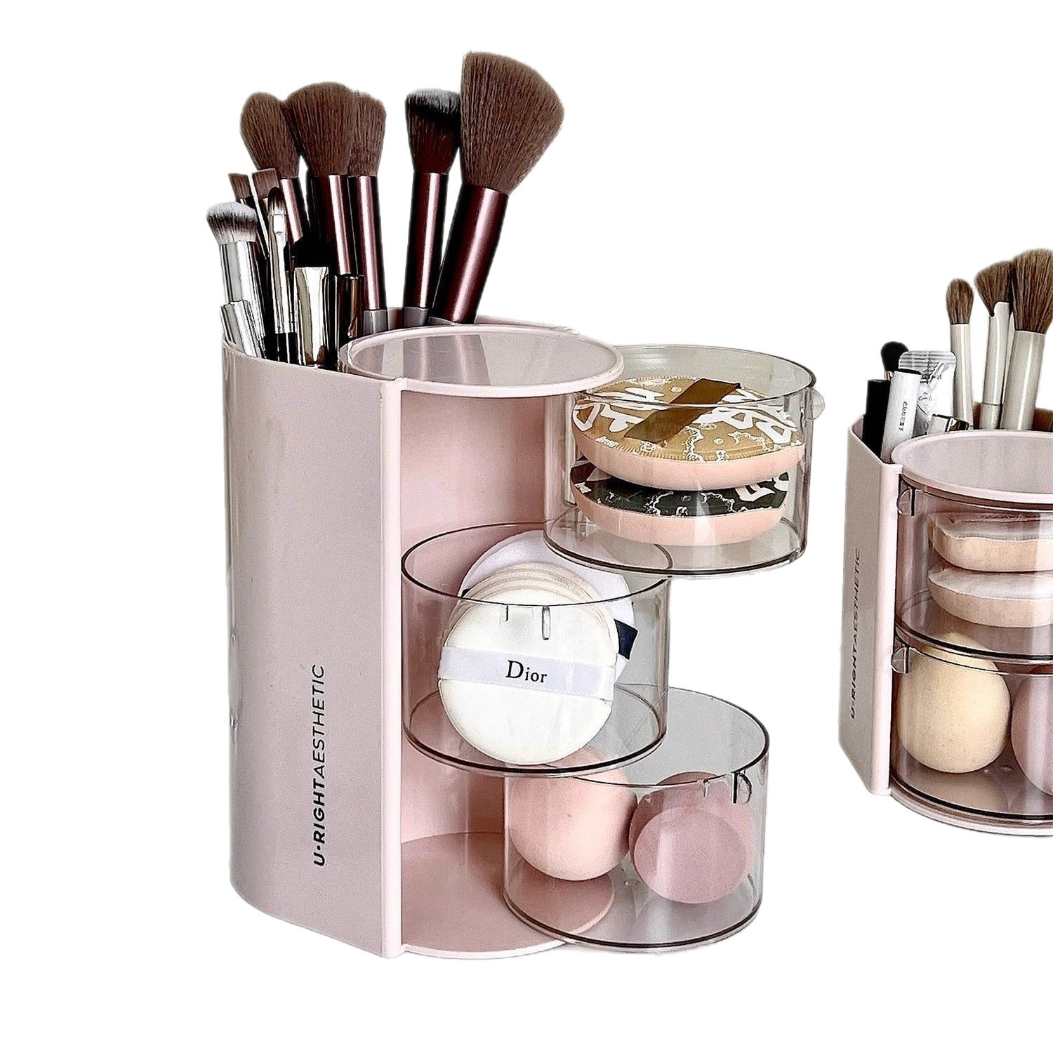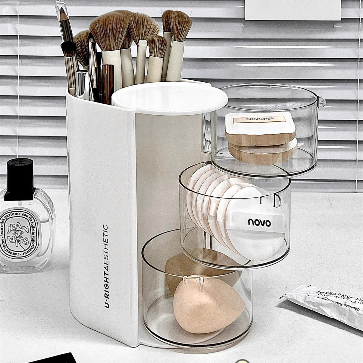 Главная страница > Настольная вращающаяся трубка для хранения кистей для макияжа, пудра, карандаш для бровей, косметическое яйцо, пылезащитный ящик для хранения, небольшая полка для хранения косметики