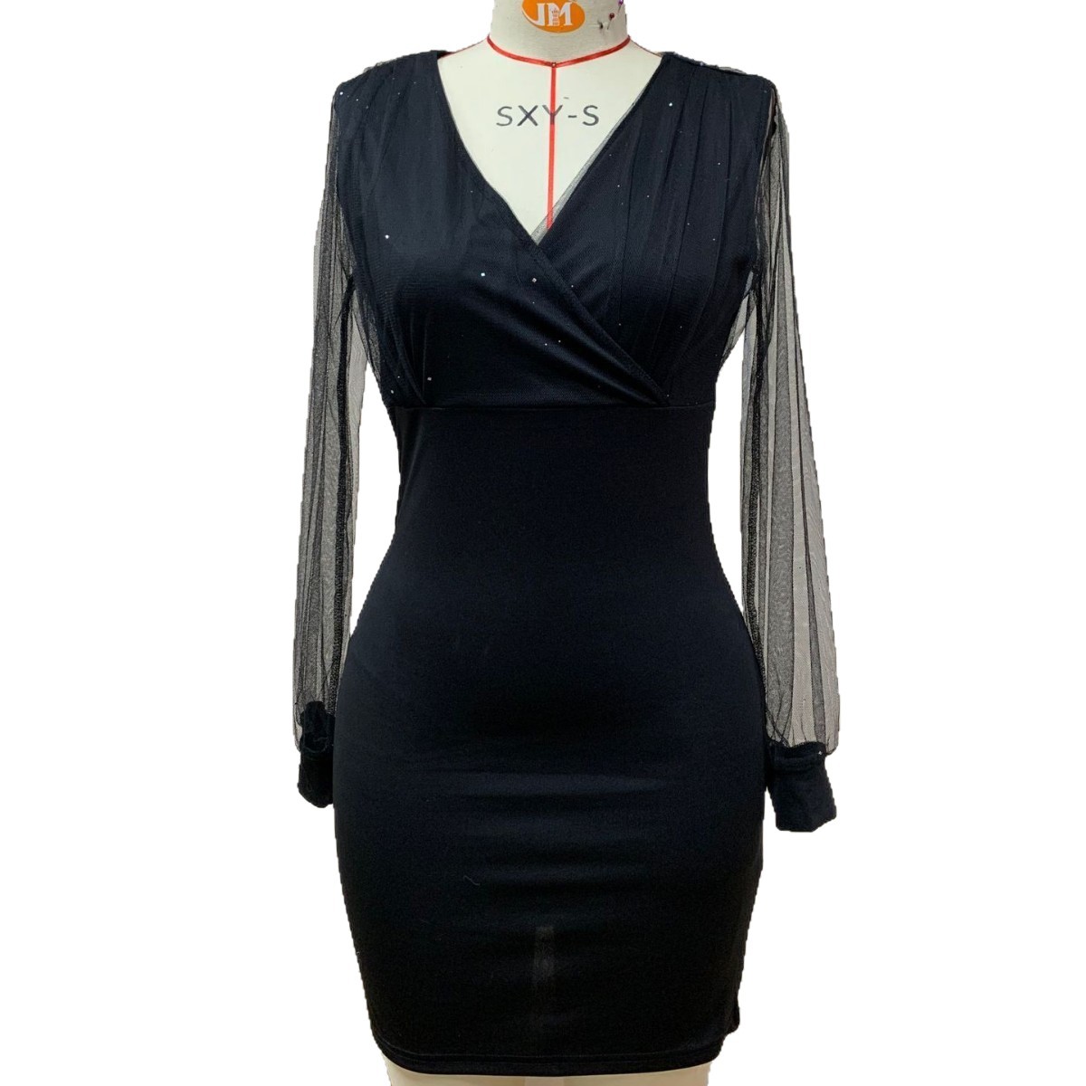 Главная страница > В наличии 2025 новое европейское и американское платье в стиле mesh с V-образным вырезом, пайетками, элегантное, облегающее, сексуальное