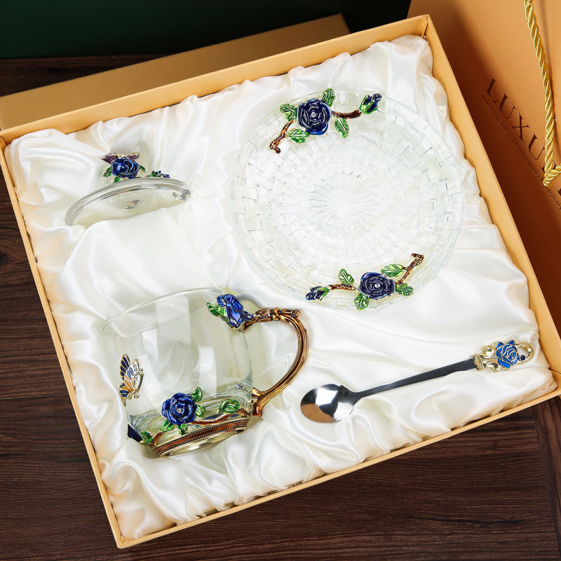 Голубая роза короткая модель 330 ложки крышки чашки посуды (подарочная коробка)