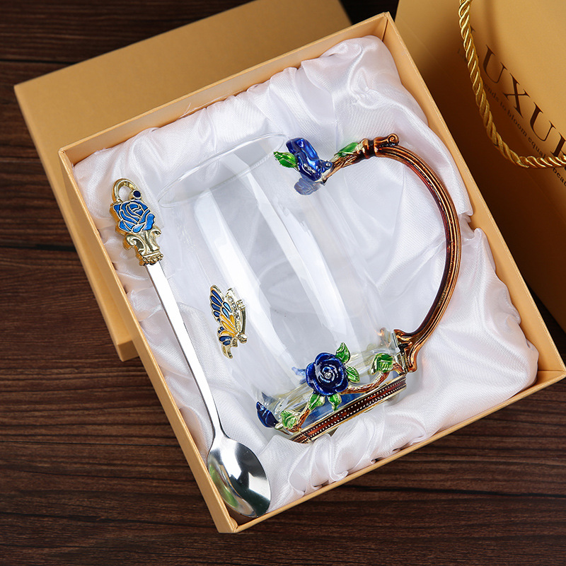 Синяя роза высокая 350 мл (подарочная коробка) эмалевая ложка