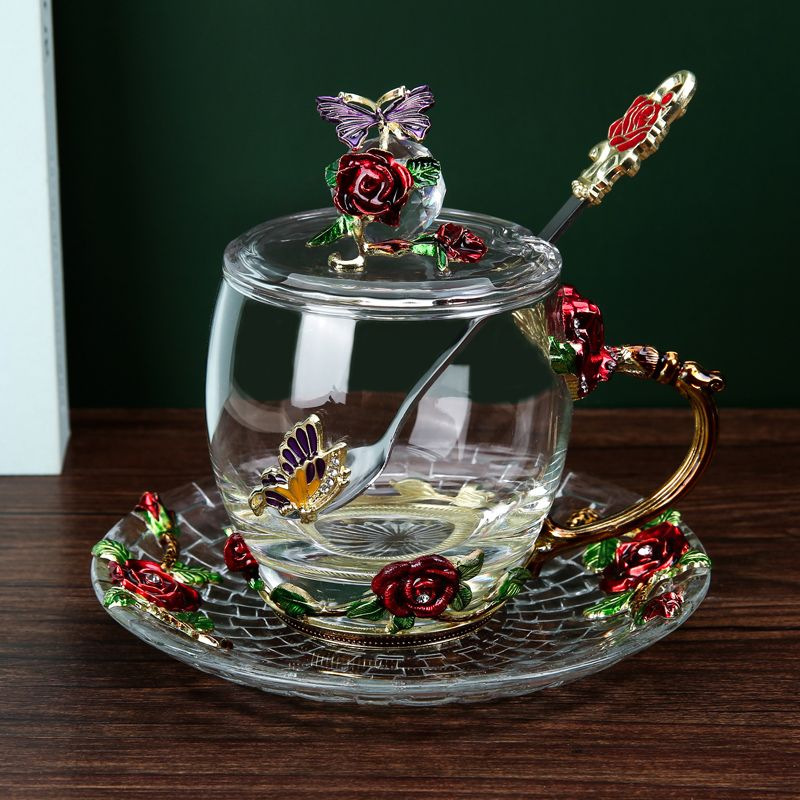 Эмалированная водяная чашка для домашнего отдыха креативная легкая роскошная кофейная чашка женская модная стеклянная чашка для завтрака молочная чашка набор