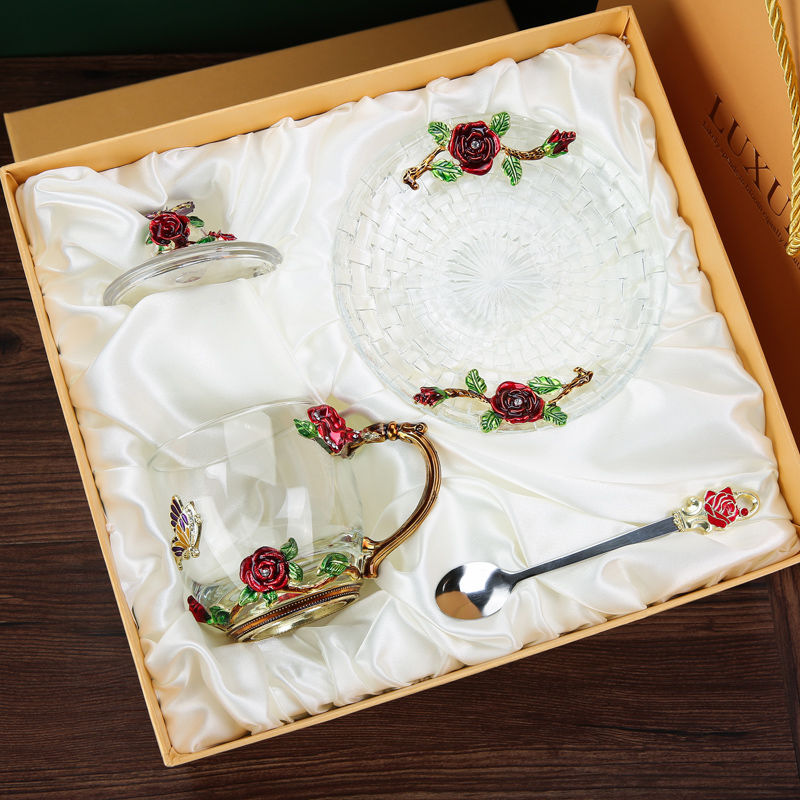 Красная роза короткая модель 330 ложки крышки чашки посуды (подарочная коробка)