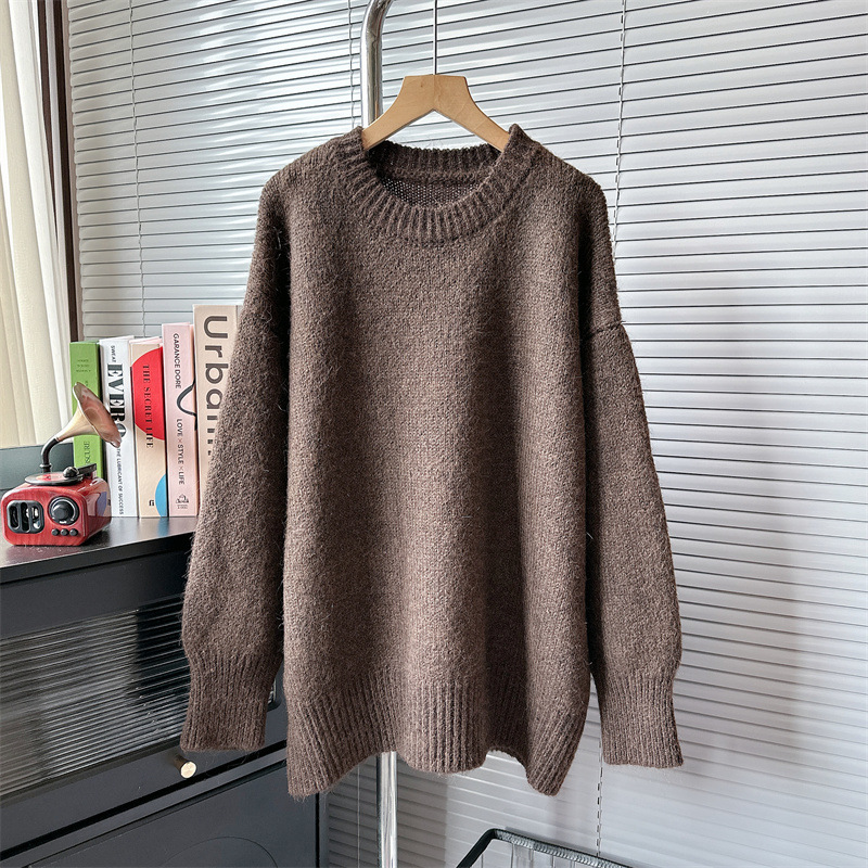 Главная страница > Трикотаж в европейском ленивом стиле для женщин на осень и зиму, новый свободный пуловер в корейском стиле с длинными рукавами, нежный мягкий восковой трикотажный топ