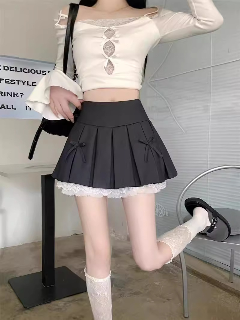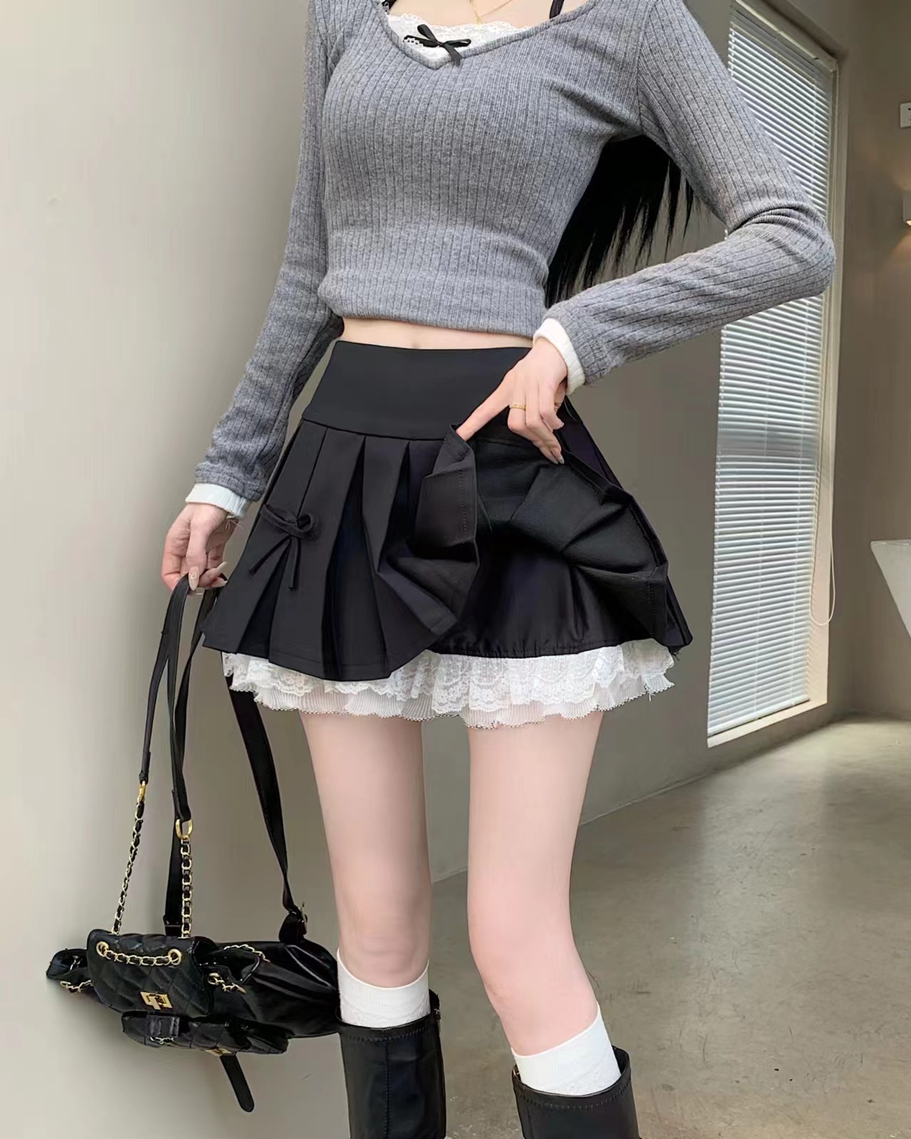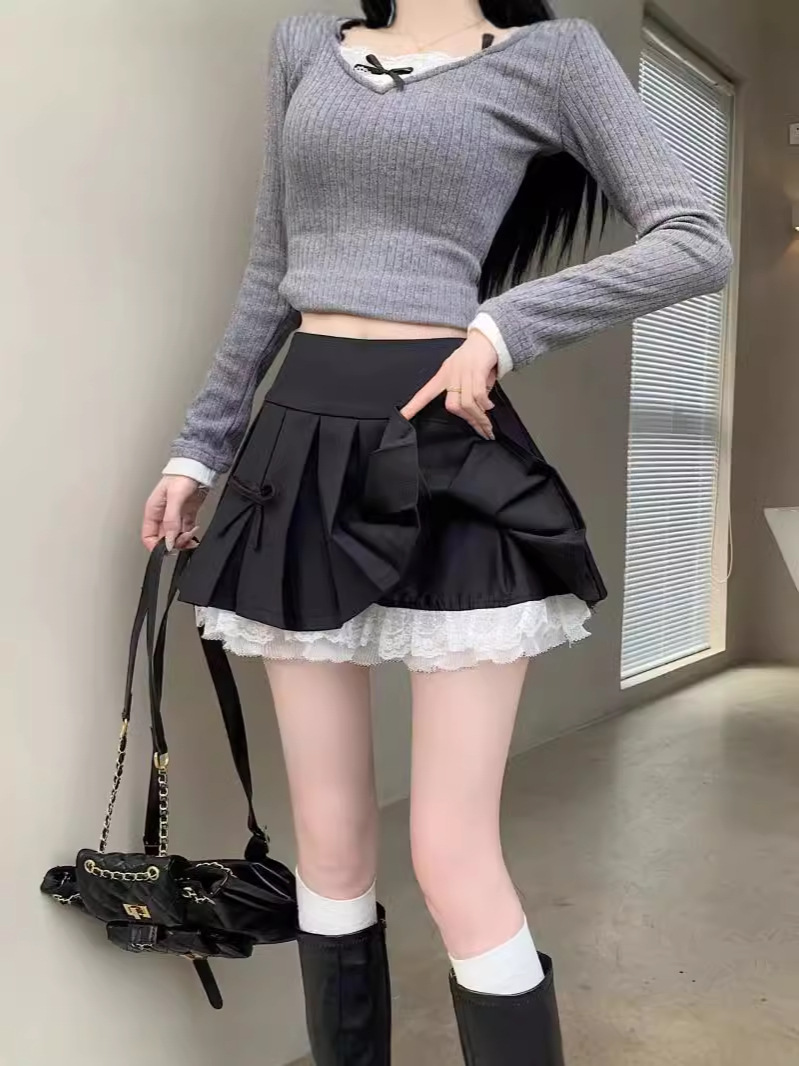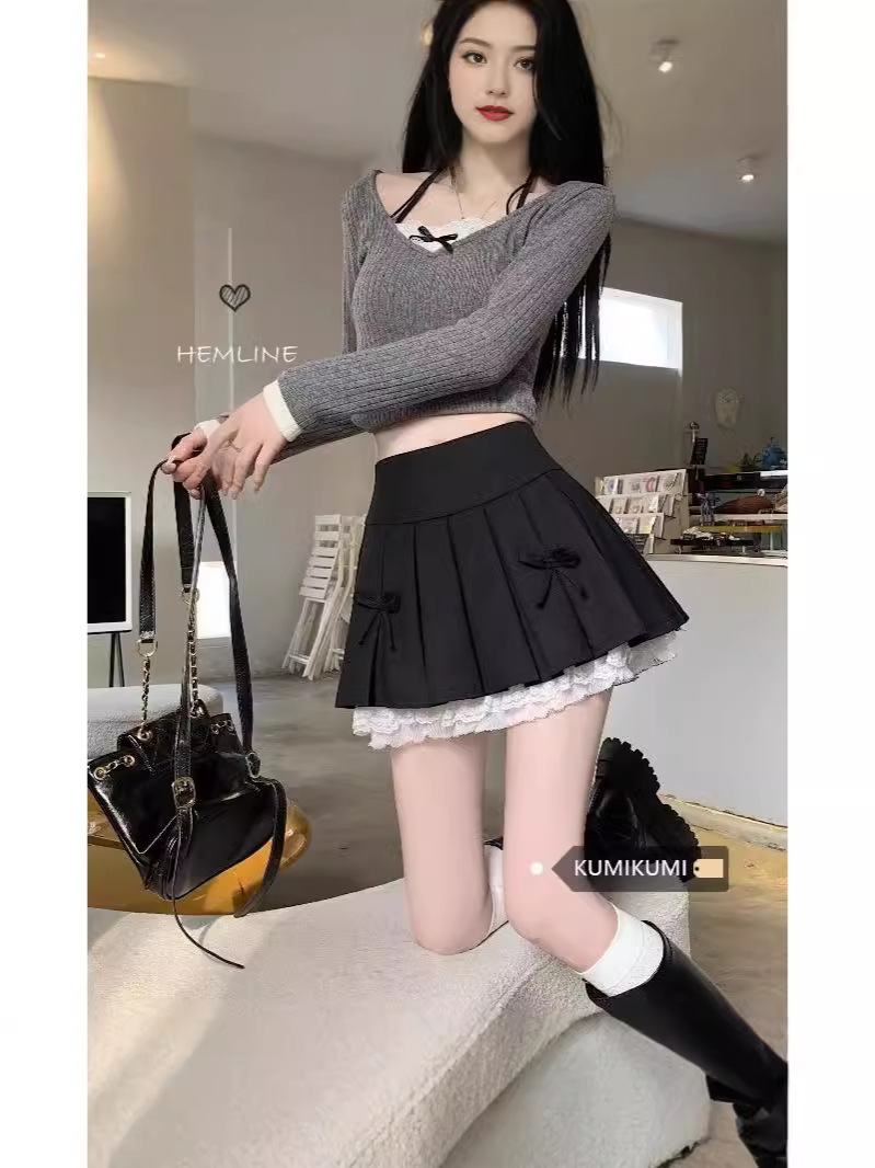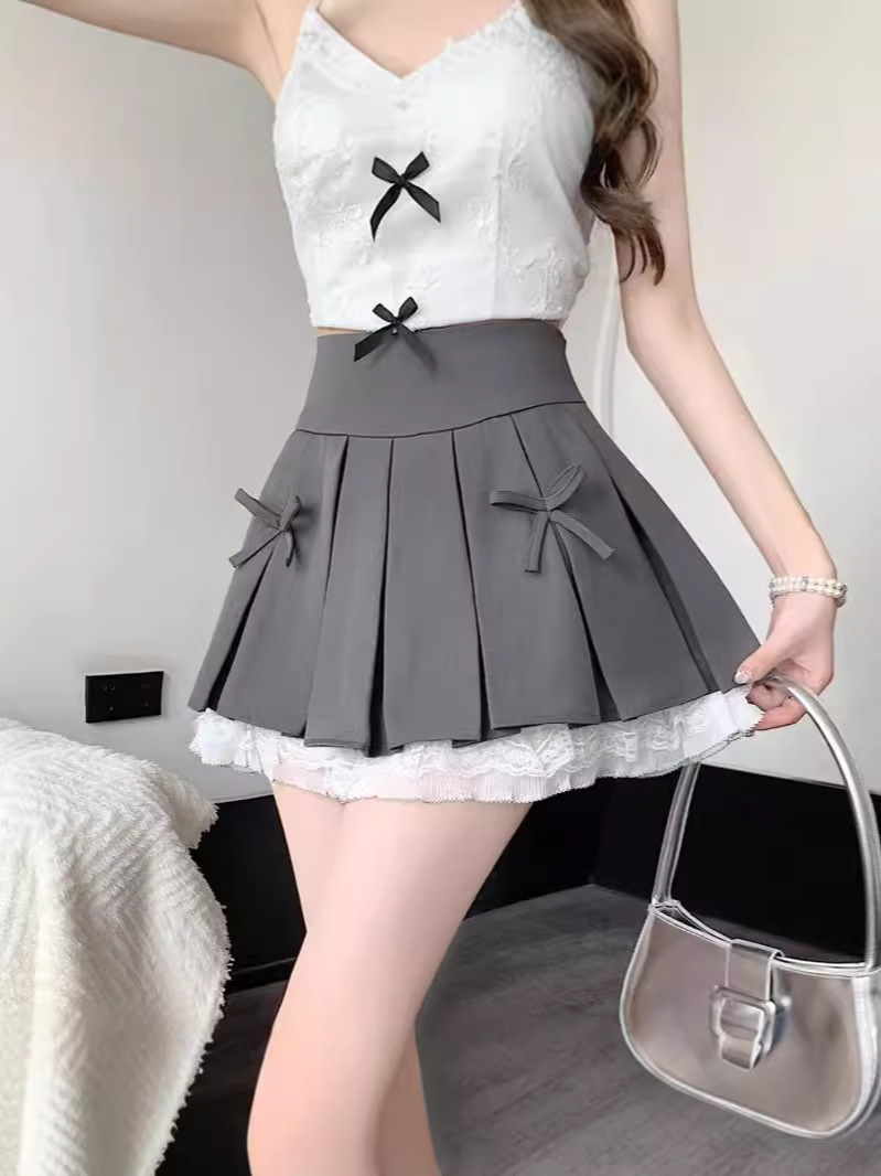 Главная страница > Горячая девушка плиссированная юбка с бантиком кружева серые юбка половинка женская сплошной цвет ранней весной с высокой талией юбка-букет летняя короткая юбка